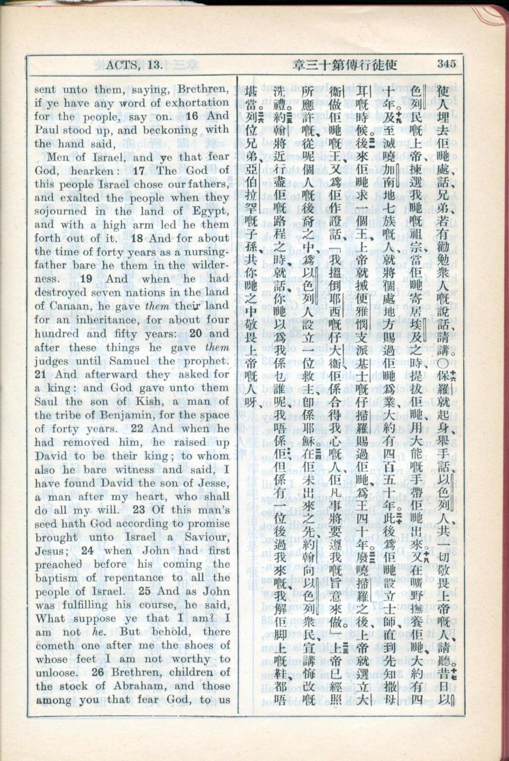 1931年新約全書廣東話新譯本與美國新譯英文 使徒行傳 13 章 16 節到 13 章 26 節