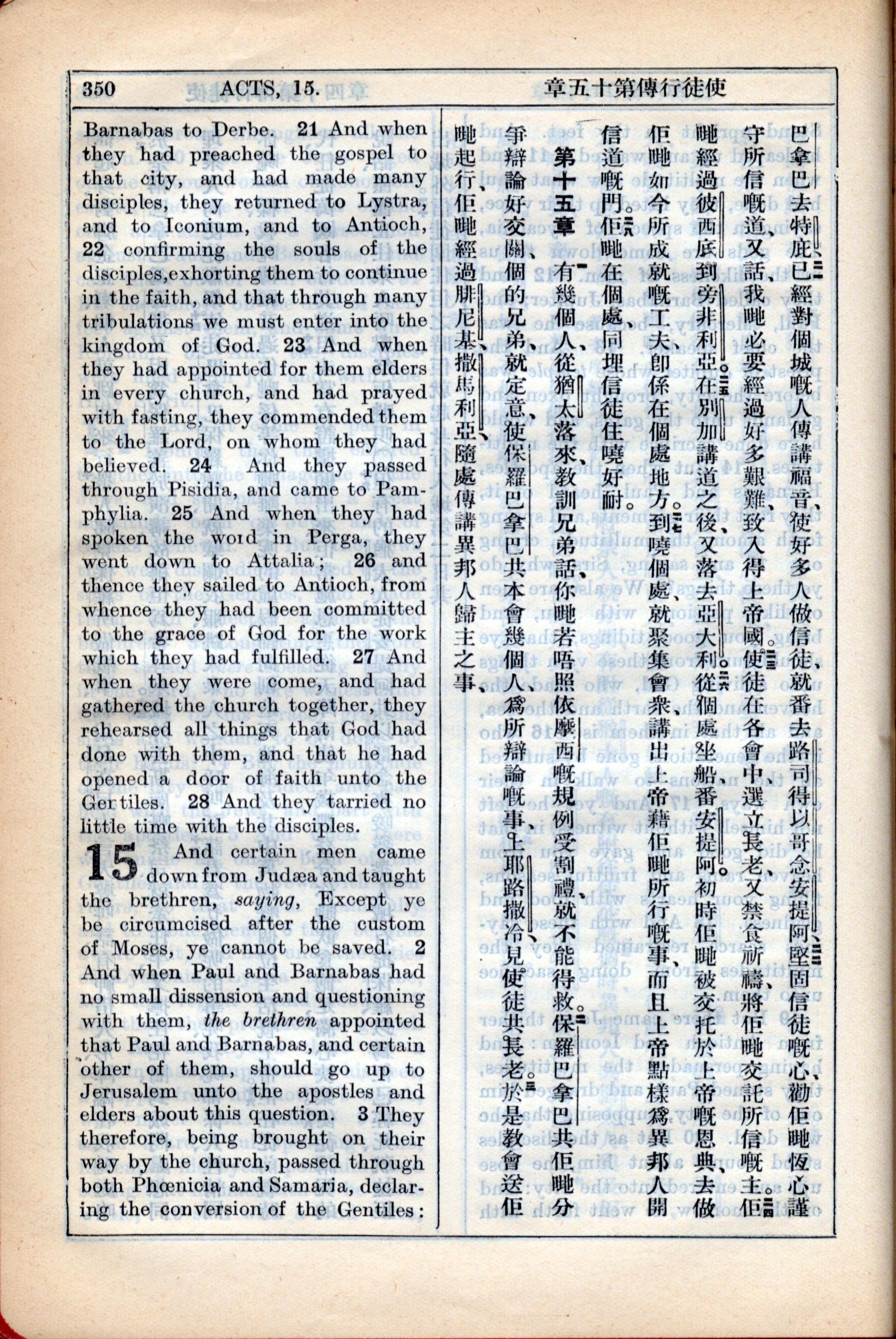 1931年新約全書廣東話新譯本與美國新譯英文 使徒行傳 14 章 21 節到 15 章 3 節