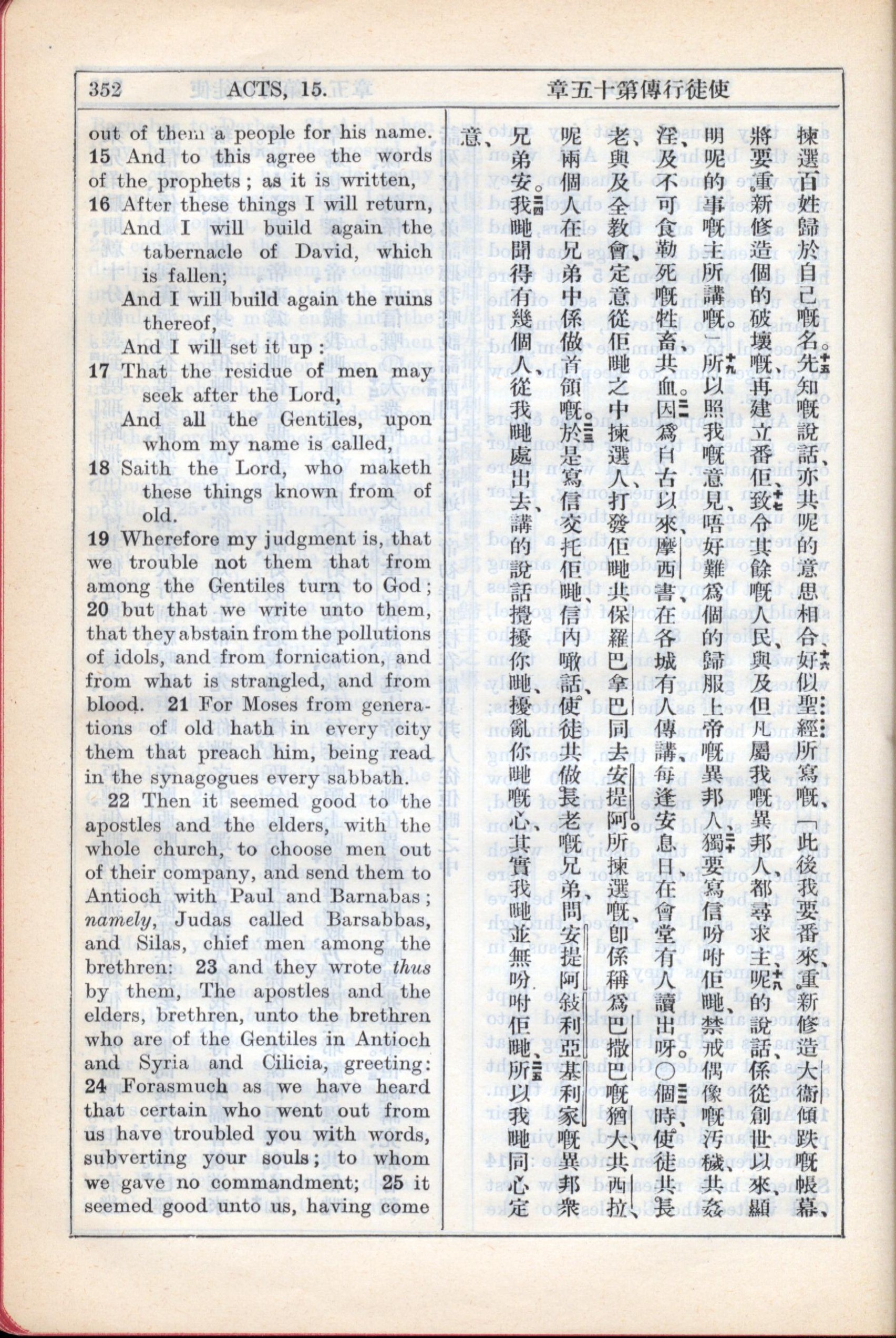 1931年新約全書廣東話新譯本與美國新譯英文 使徒行傳 15 章 15 節到 15 章 25 節