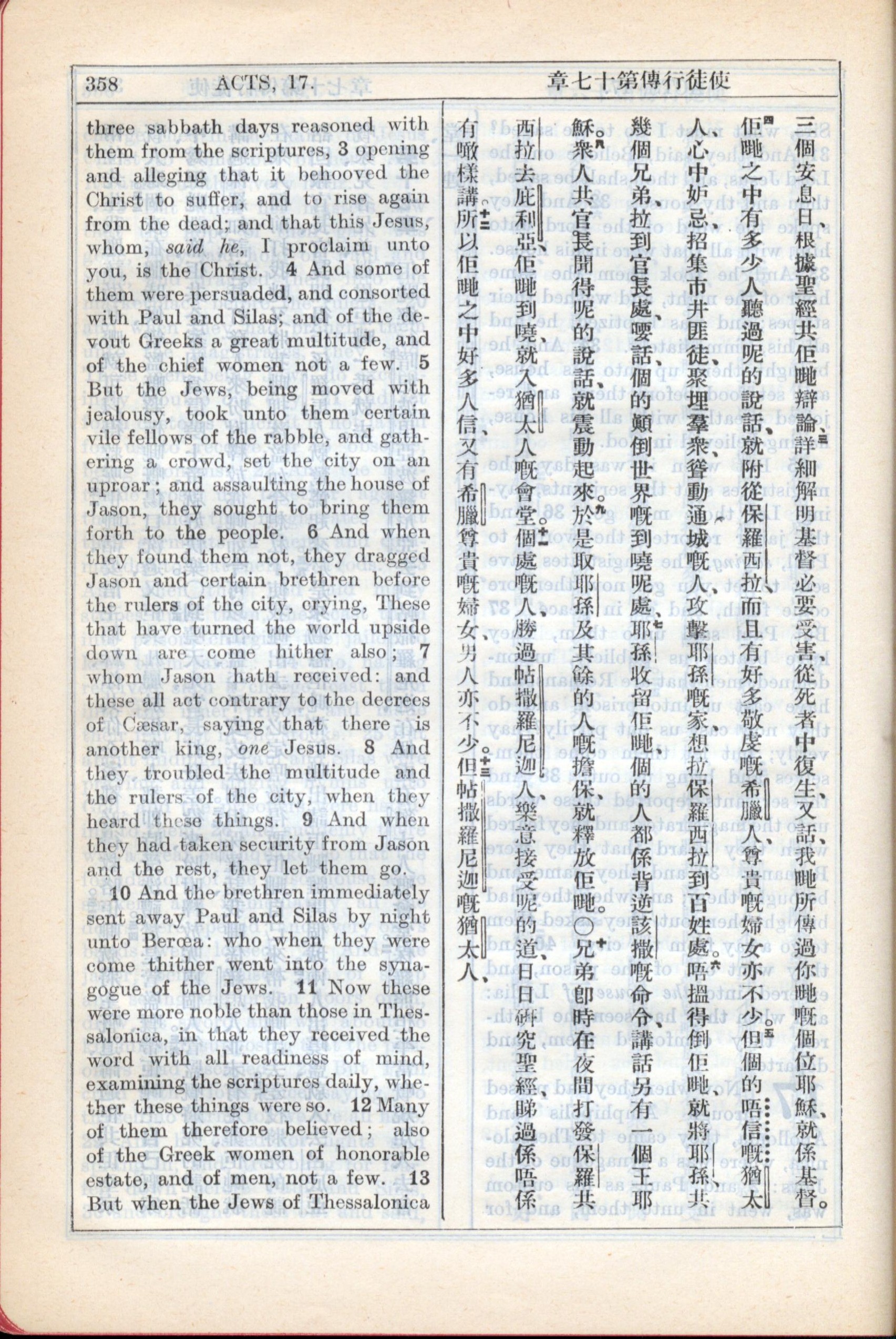 1931年新約全書廣東話新譯本與美國新譯英文 使徒行傳 17 章 3 節到 17 章 13 節