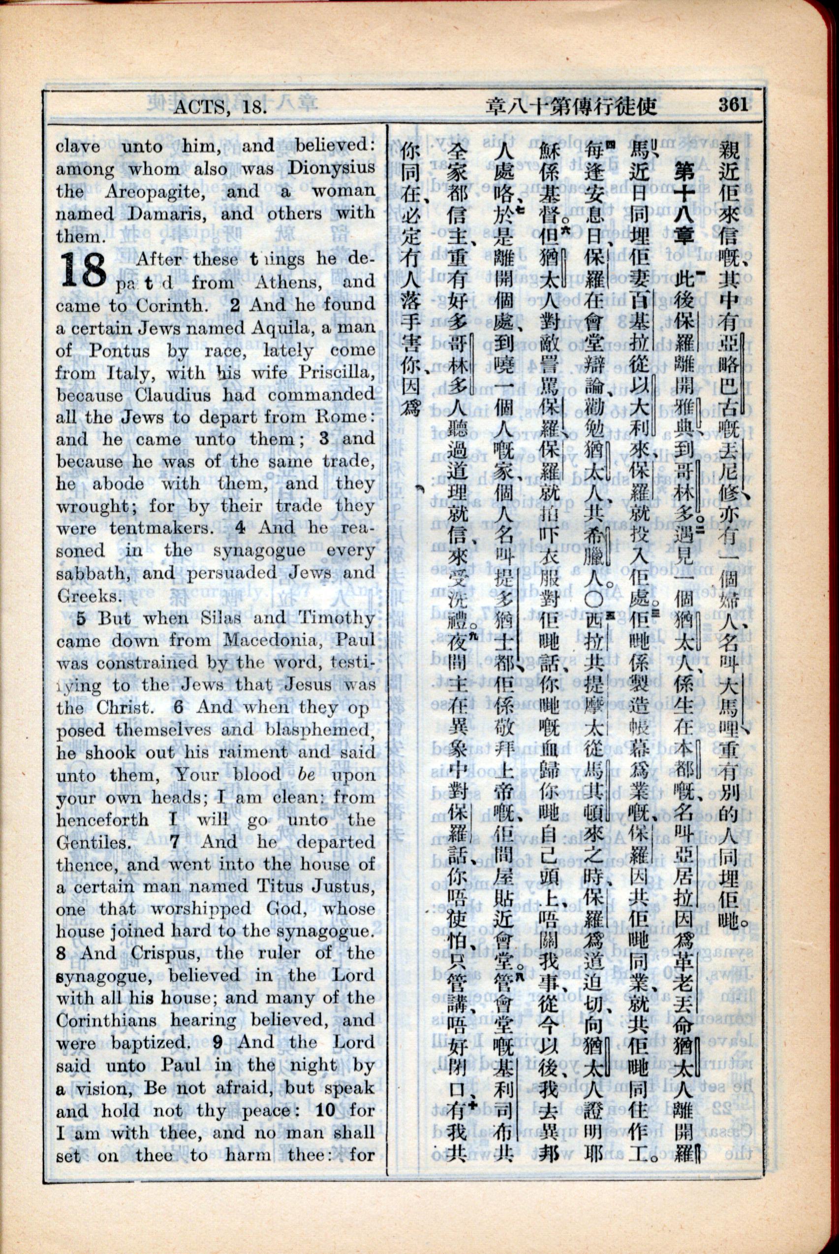 1931年新約全書廣東話新譯本與美國新譯英文 使徒行傳 17 章 34 節到 18 章 10 節