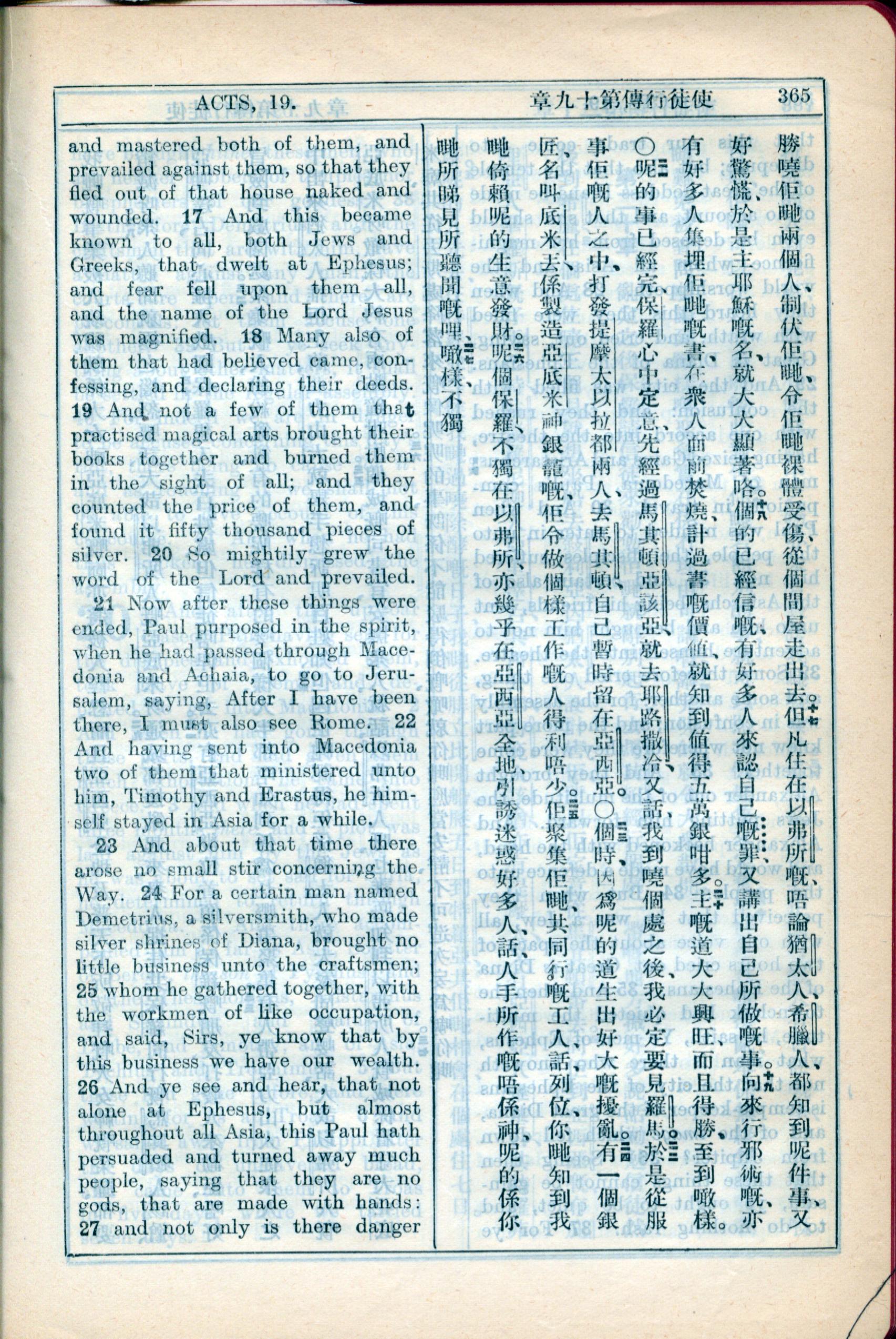 1931年新約全書廣東話新譯本與美國新譯英文 使徒行傳 19 章 17 節到 19 章 26 節