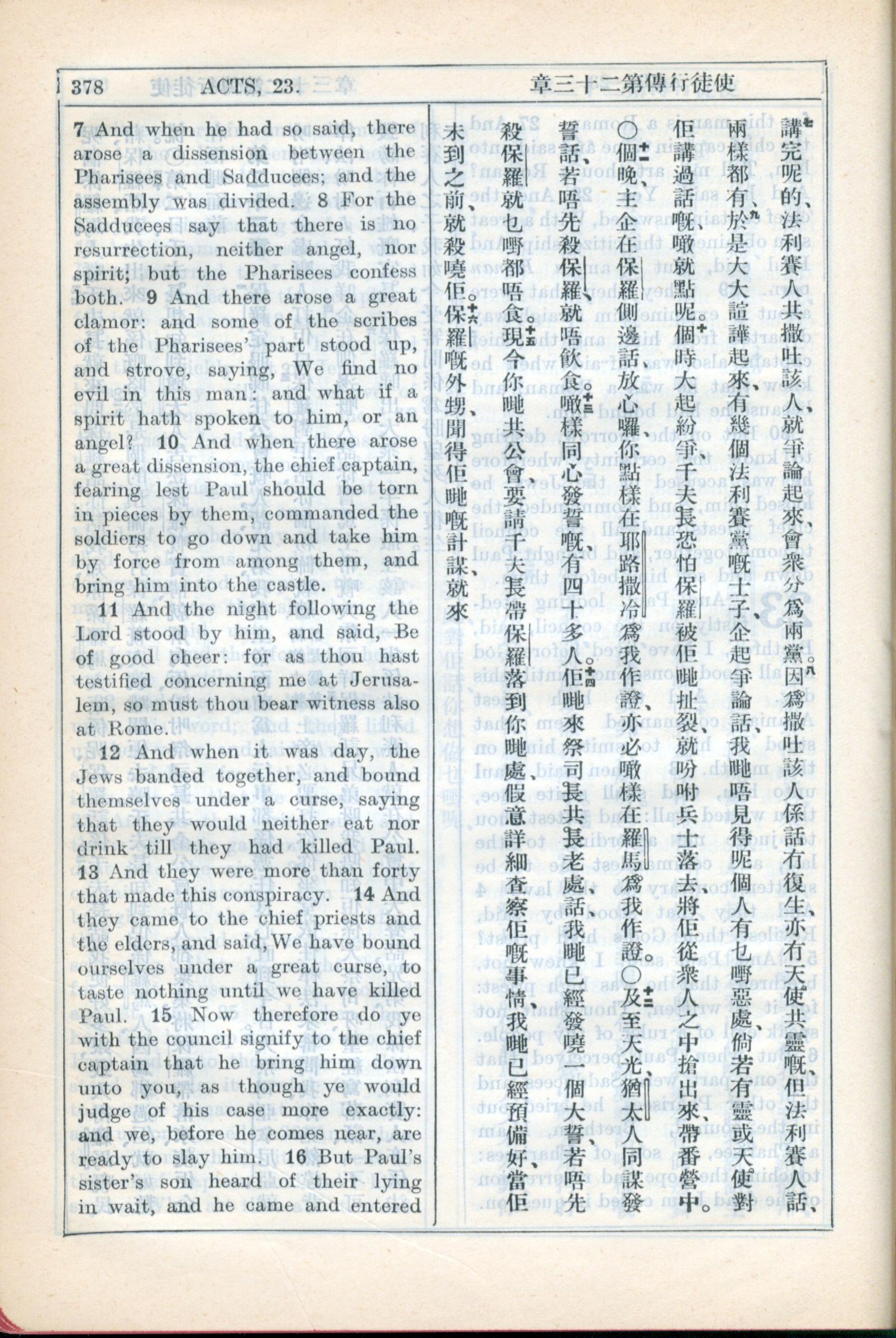 1931年新約全書廣東話新譯本與美國新譯英文 使徒行傳 23 章 7 節到 23 章 16 節