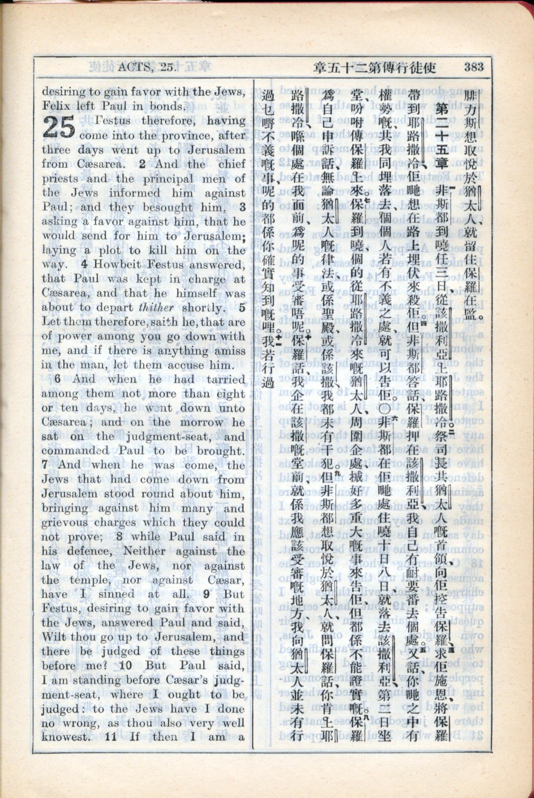 1931年新約全書廣東話新譯本與美國新譯英文 使徒行傳 25 章 1 節到 25 章 10 節