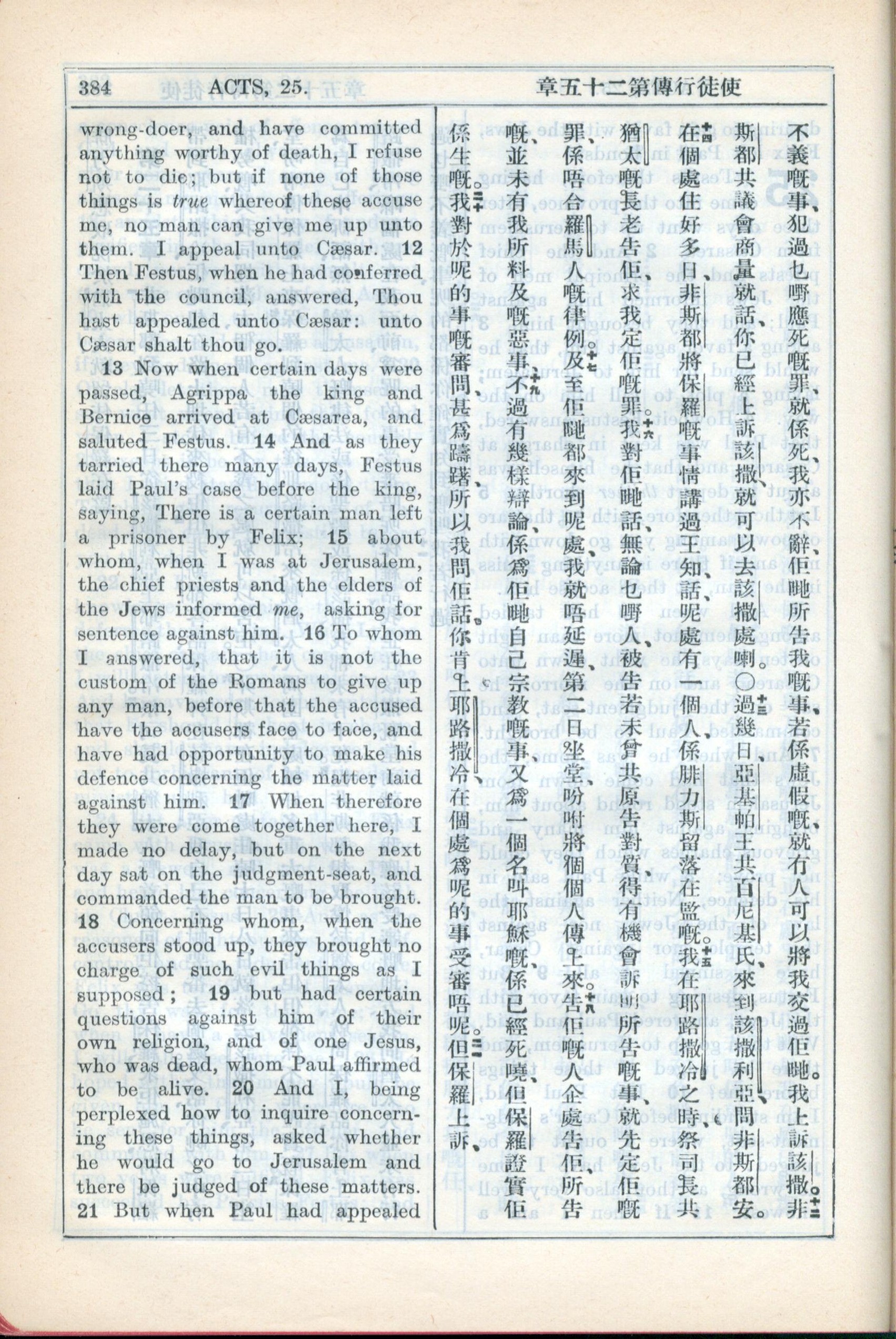 1931年新約全書廣東話新譯本與美國新譯英文 使徒行傳 25 章 11 節到 25 章 20 節
