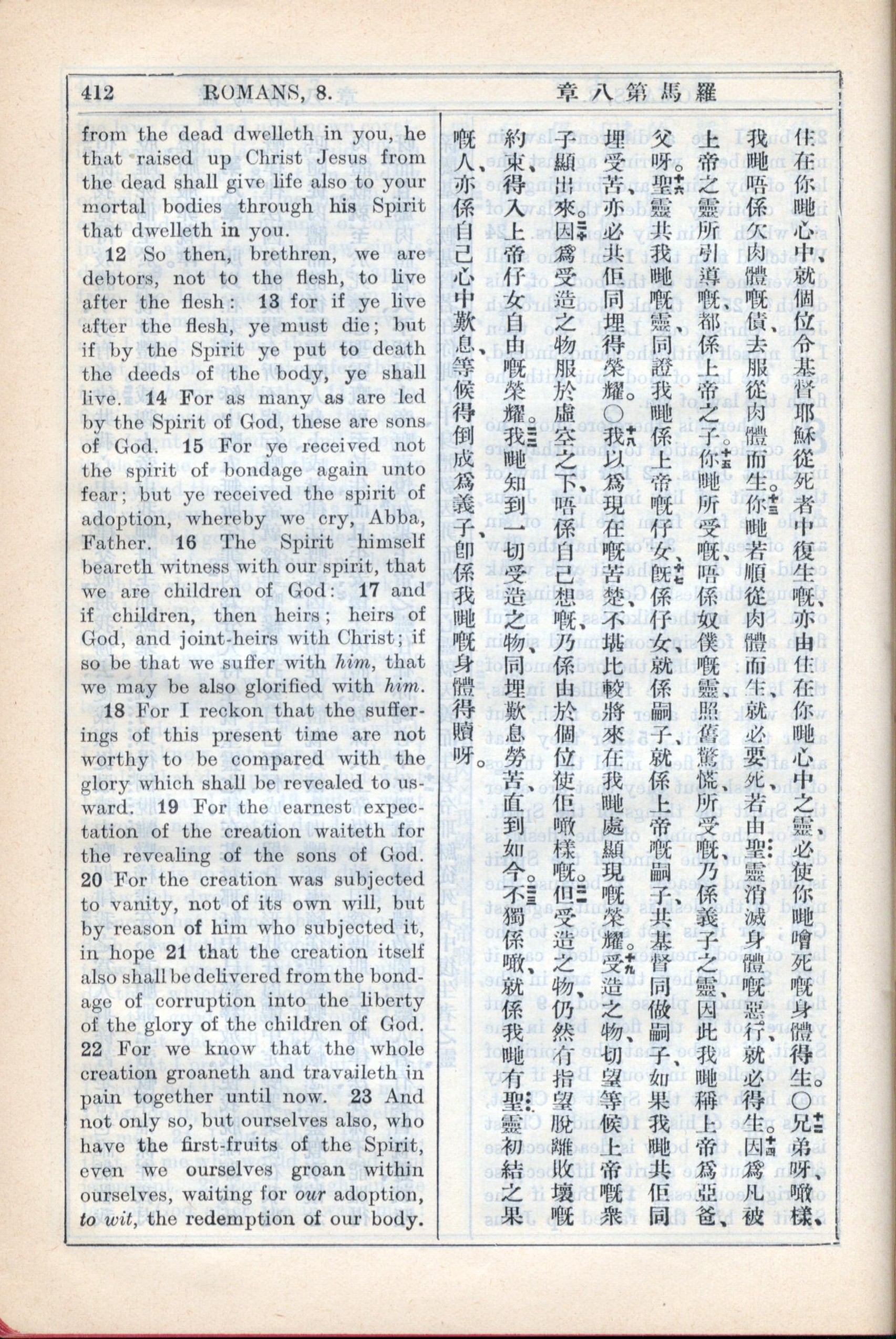 1931年新約全書廣東話新譯本與美國新譯英文 羅馬書 8 章 11 節到 8 章 23 節