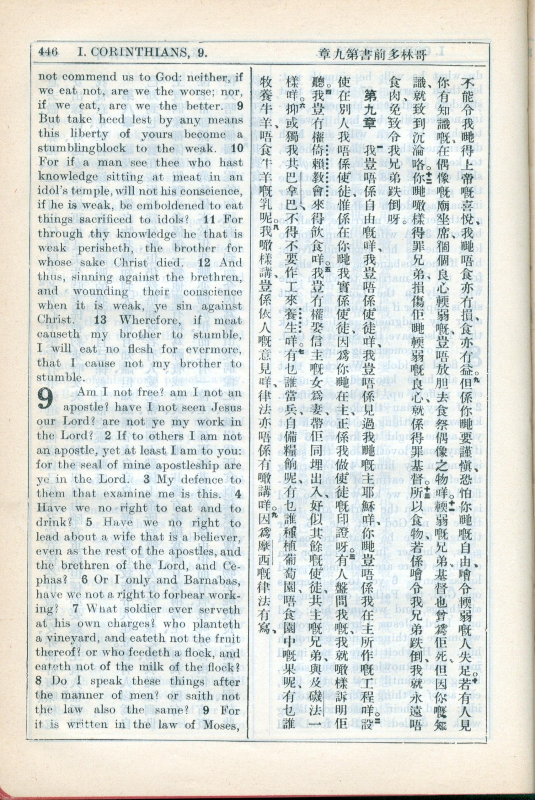 1931年新約全書廣東話新譯本與美國新譯英文 哥林多前書 8 章 8 節到 9 章 9 節