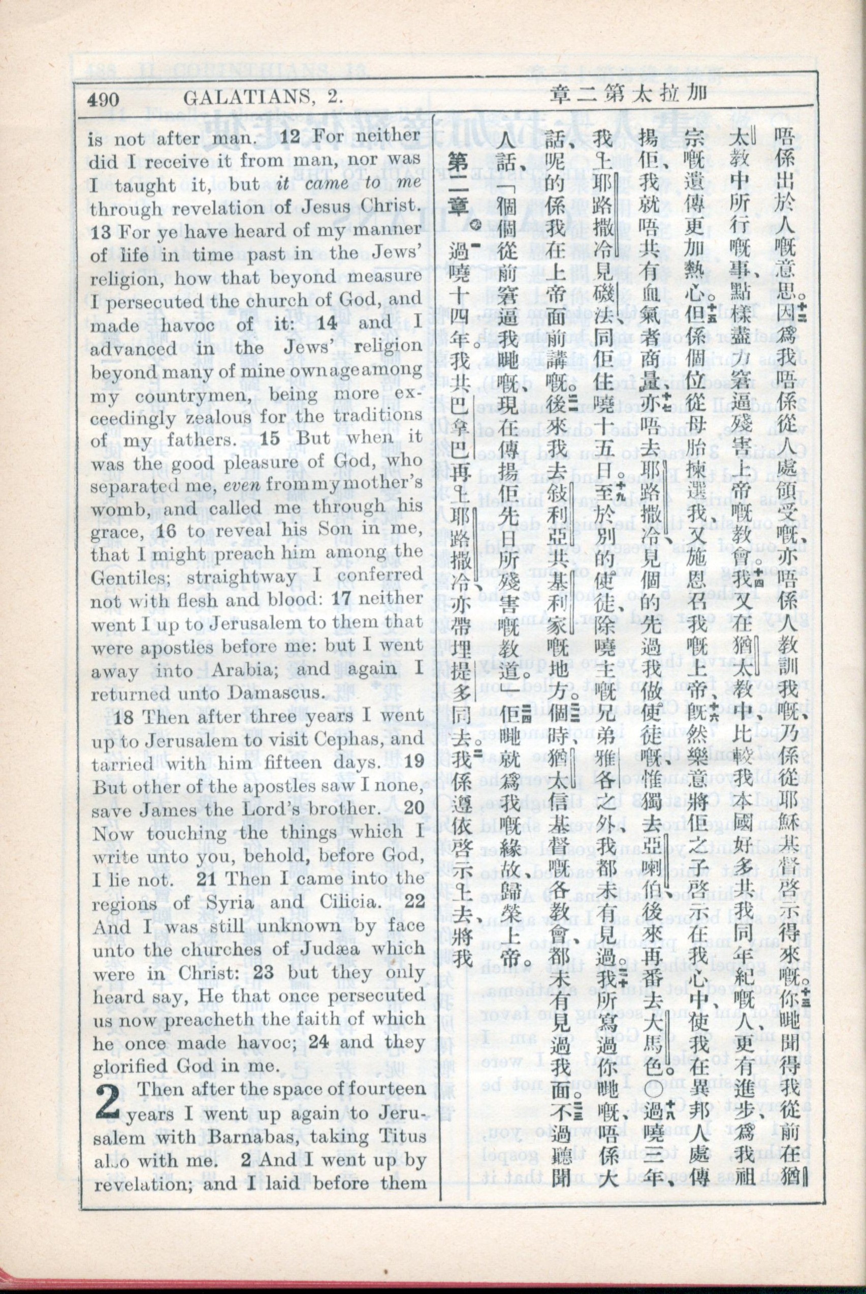 1931年新約全書廣東話新譯本與美國新譯英文 加拉太書 1 章 12 節到 2 章 1 節