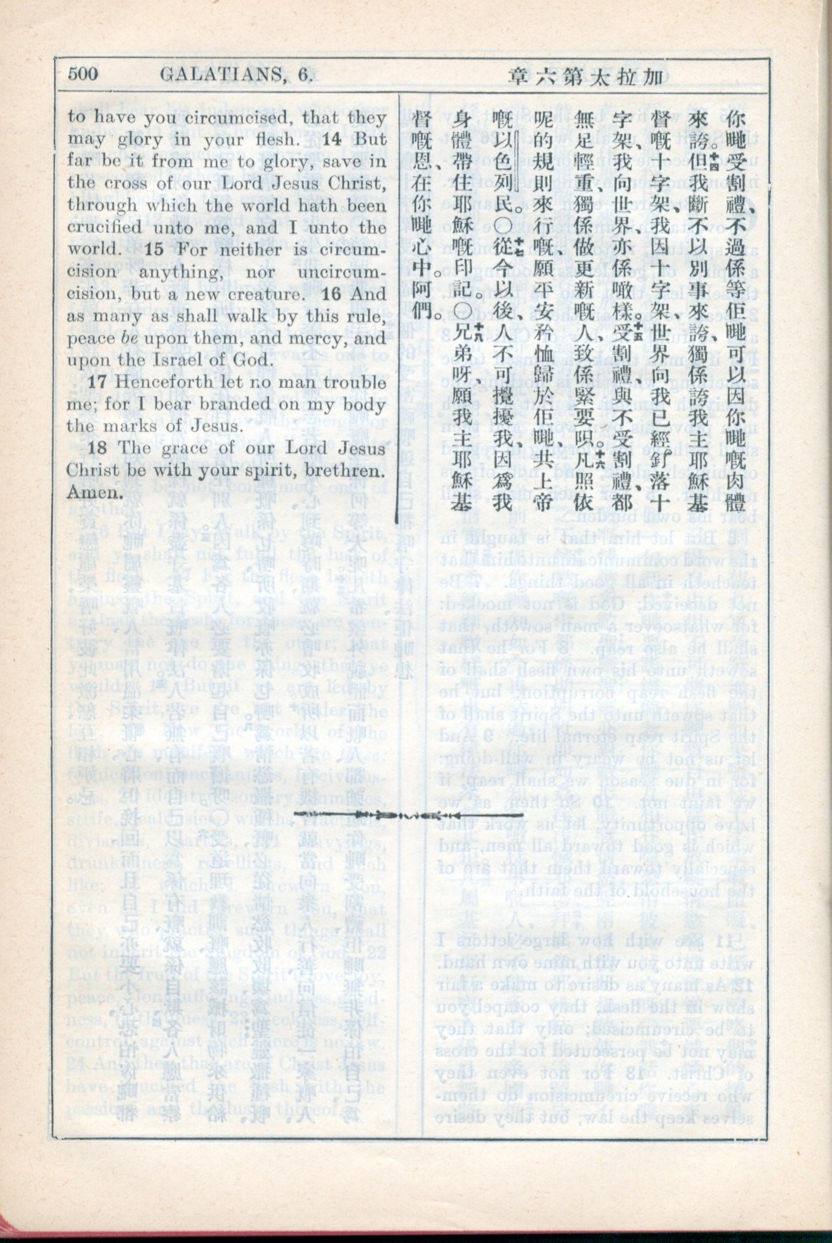 1931年新約全書廣東話新譯本與美國新譯英文 加拉太書 6 章 14 節到 6 章 18 節