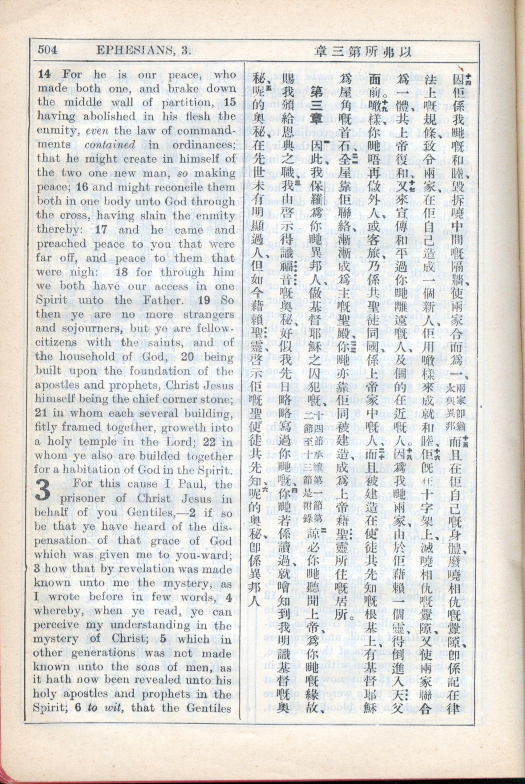 1931年新約全書廣東話新譯本與美國新譯英文 以弗所書 2 章 14 節到 3 章 6 節