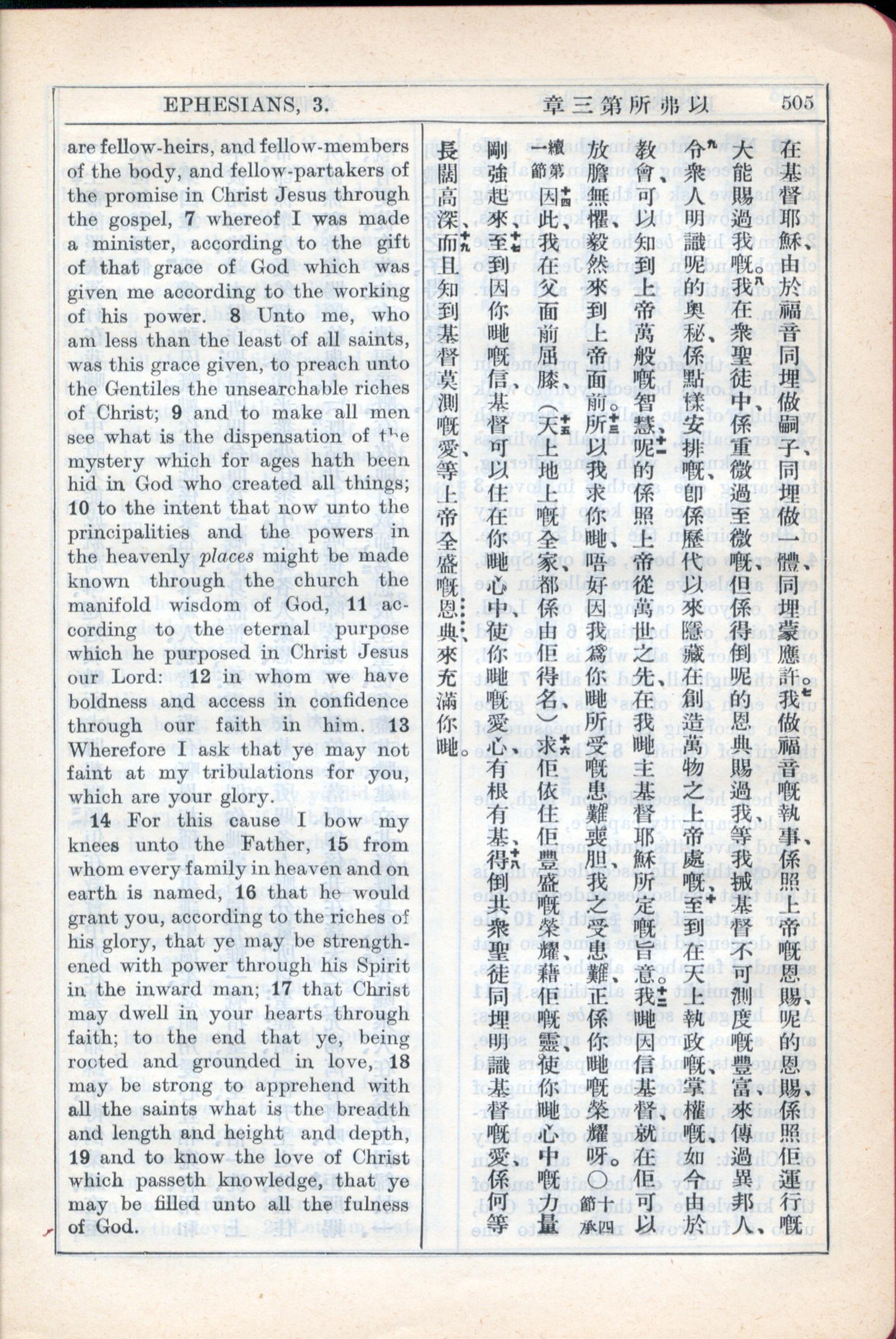 1931年新約全書廣東話新譯本與美國新譯英文 以弗所書 3 章 7 節到 3 章 19 節