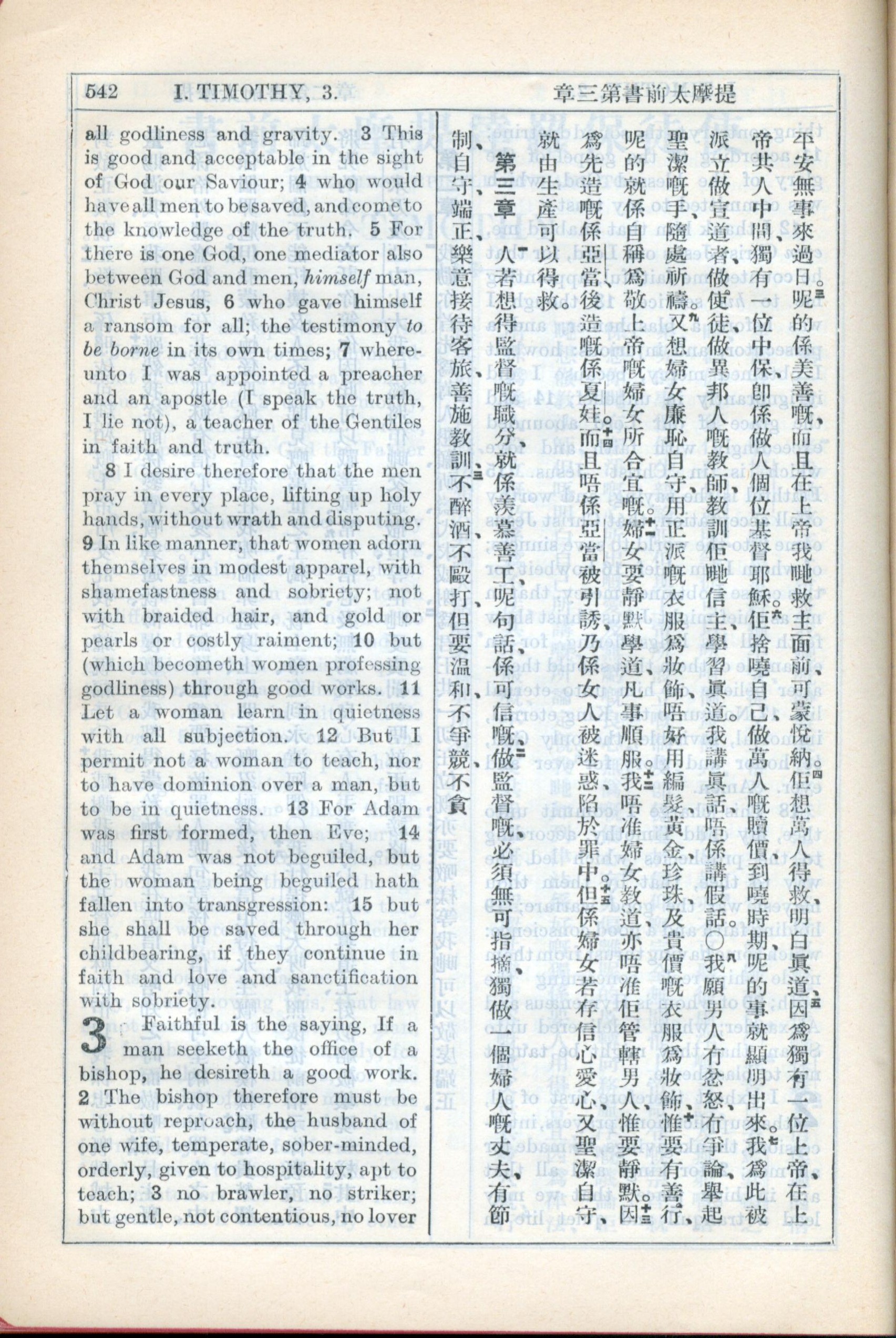 1931年新約全書廣東話新譯本與美國新譯英文 提摩太前書 2 章 3 節到 3 章 3 節