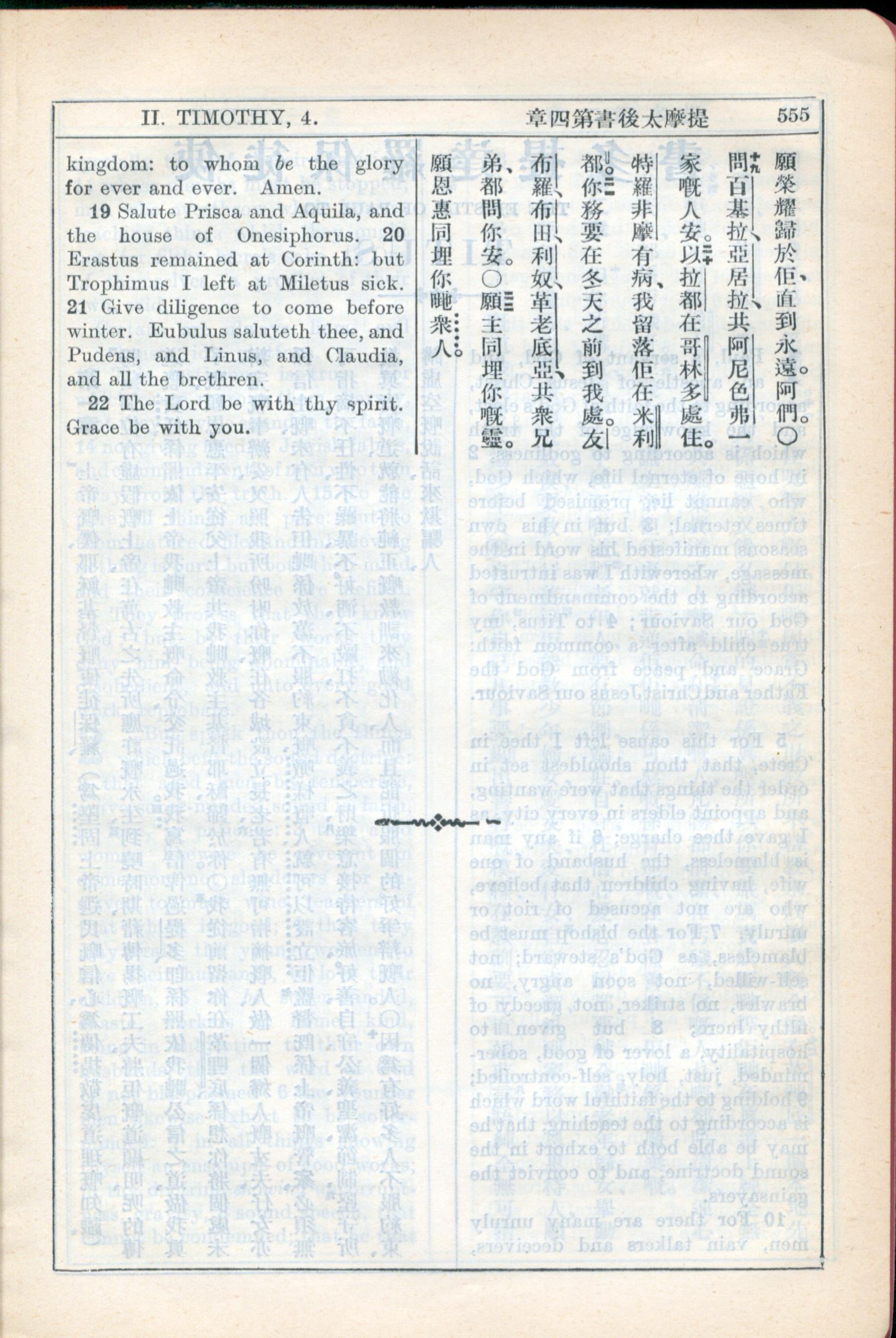 1931年新約全書廣東話新譯本與美國新譯英文 提摩太後書 4 章 19 節到 4 章 22 節