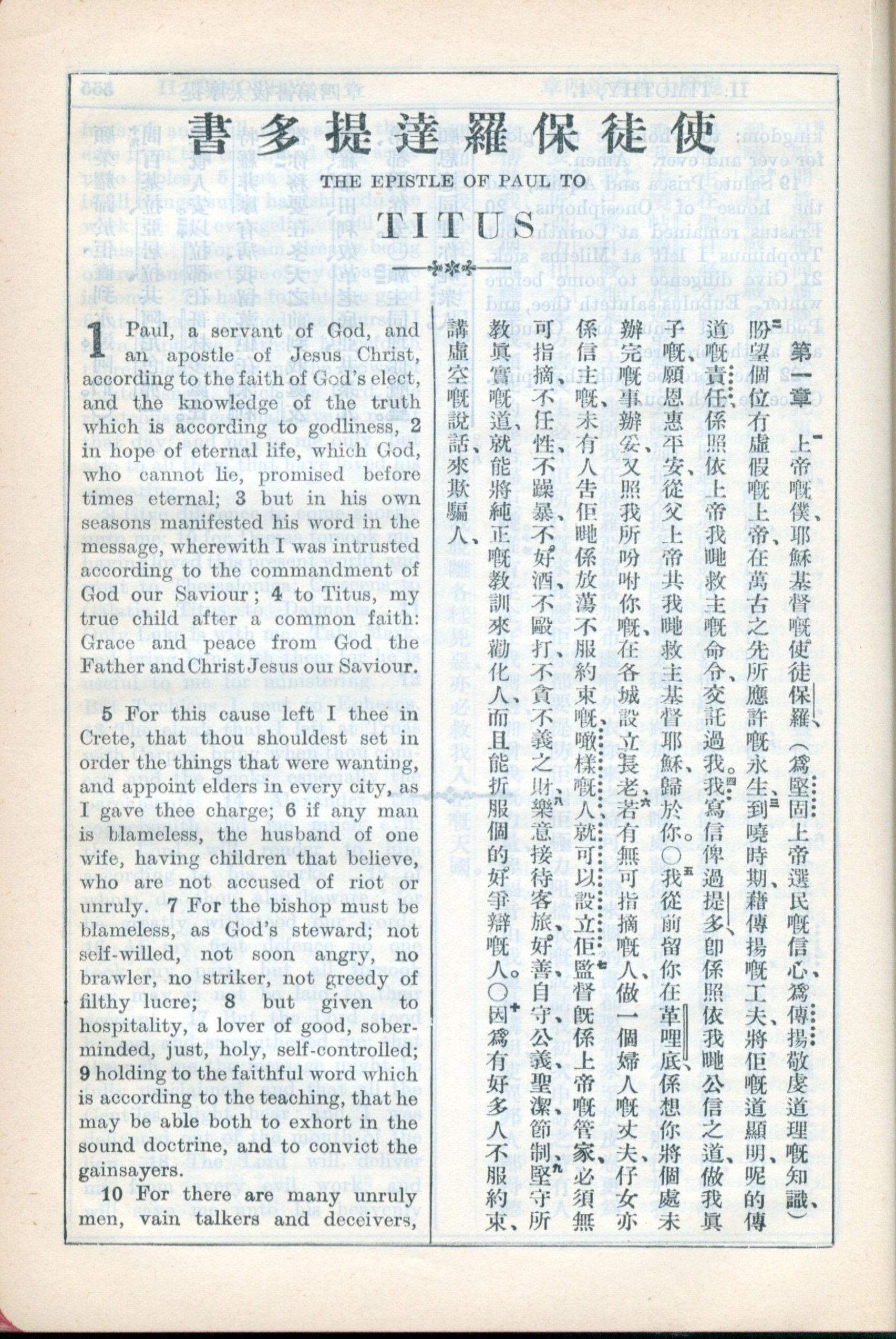 1931年新約全書廣東話新譯本與美國新譯英文 提多書 1 章 1 節到 1 章 10 節