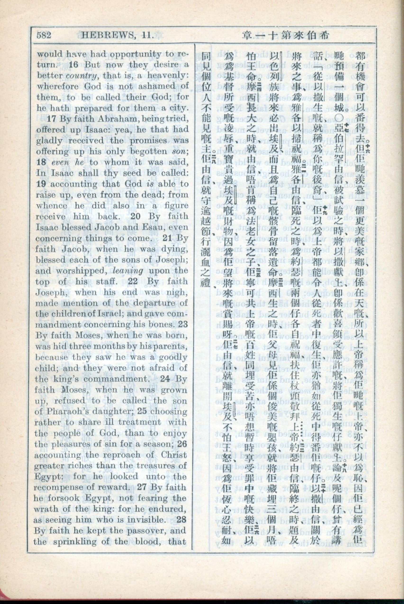 1931年新約全書廣東話新譯本與美國新譯英文 希伯來書 11 章 16 節到 11 章 28 節