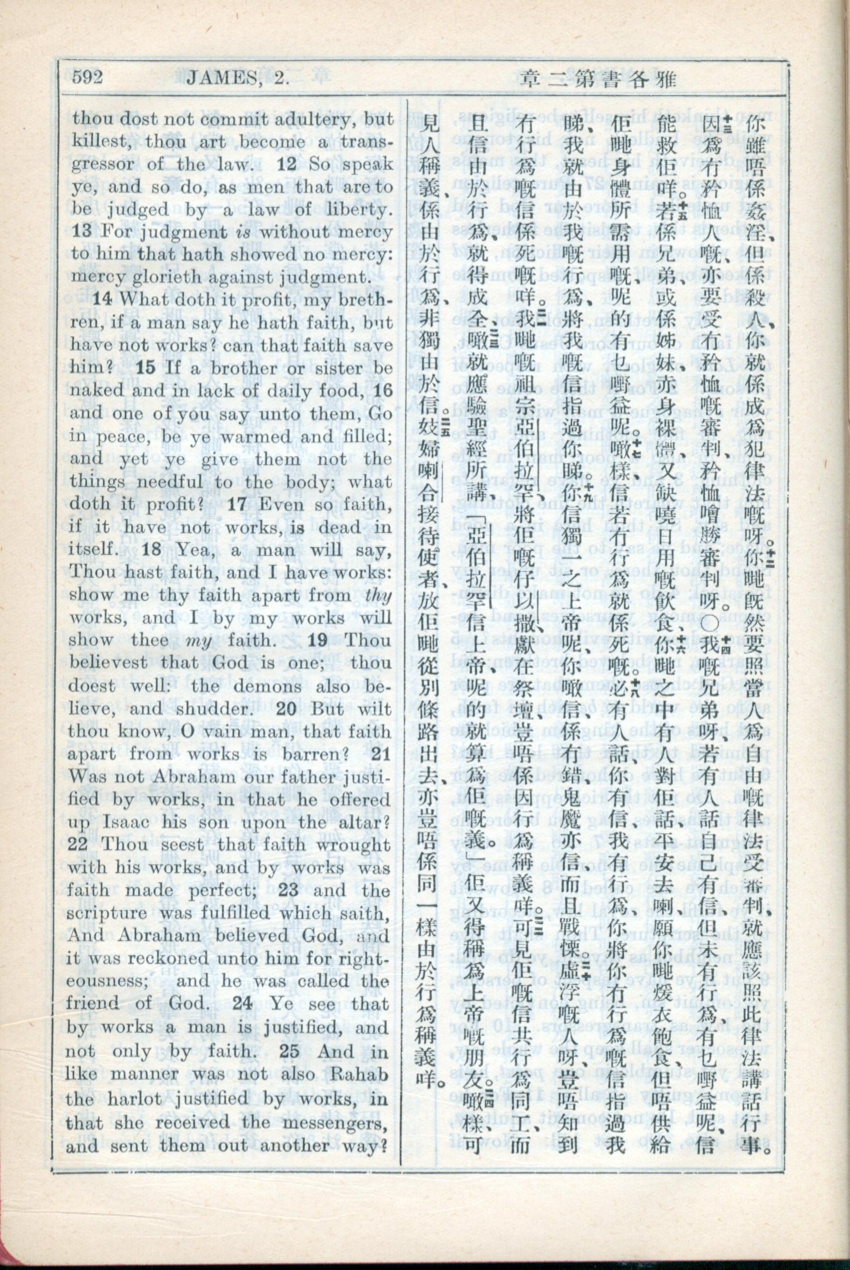 1931年新約全書廣東話新譯本與美國新譯英文 雅各書 2 章 12 節到 2 章 25 節