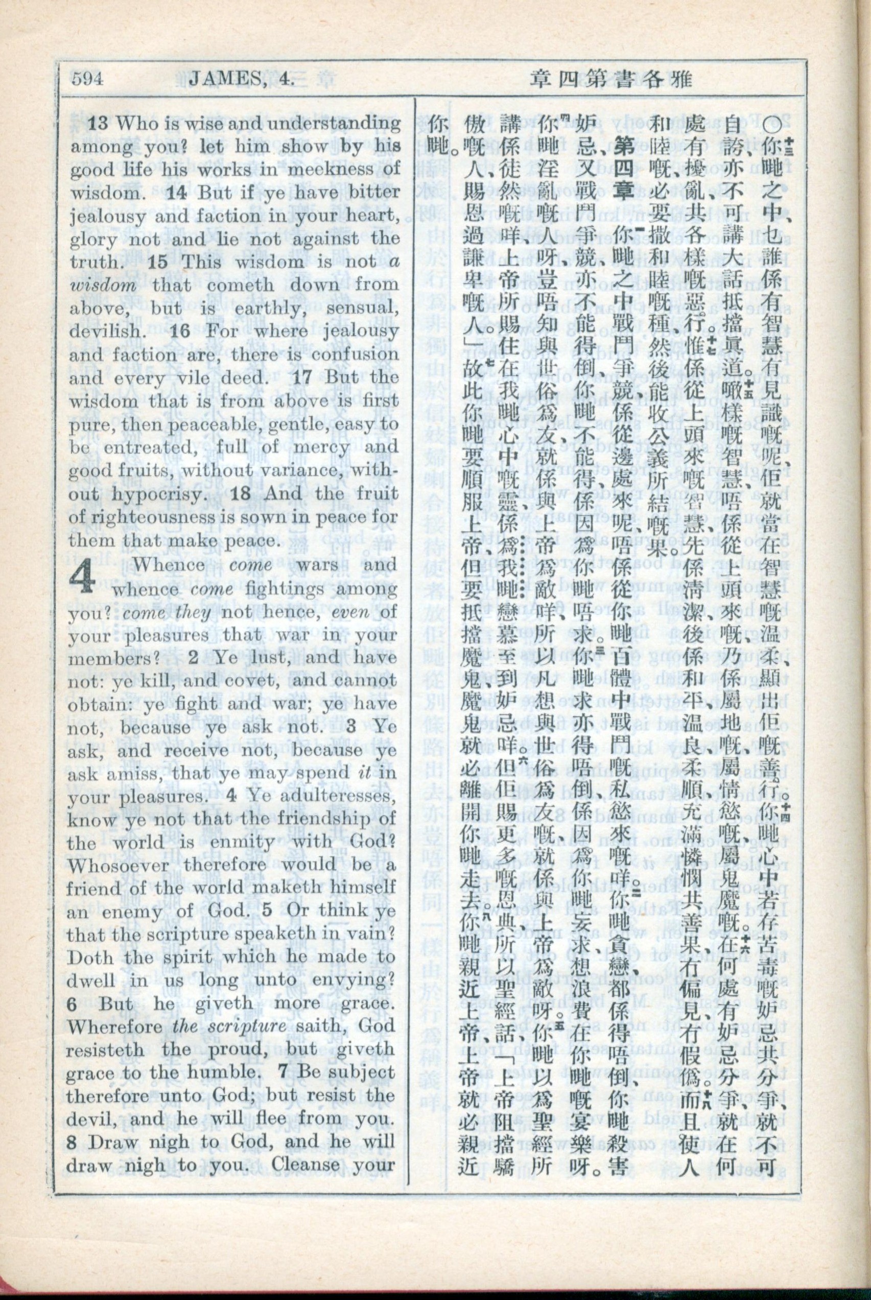 1931年新約全書廣東話新譯本與美國新譯英文 雅各書 3 章 13 節到 4 章 8 節