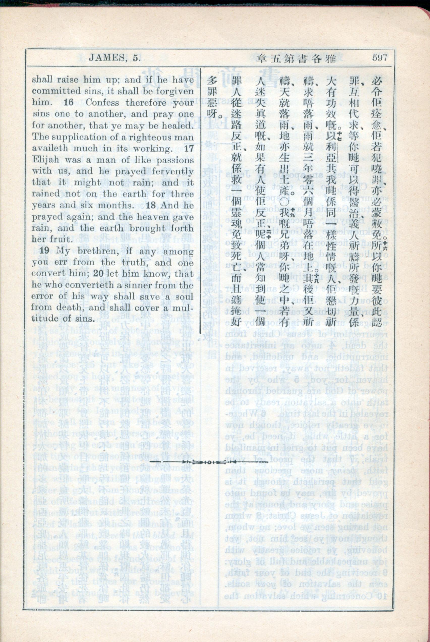 1931年新約全書廣東話新譯本與美國新譯英文 雅各書 5 章 16 節到 5 章 20 節