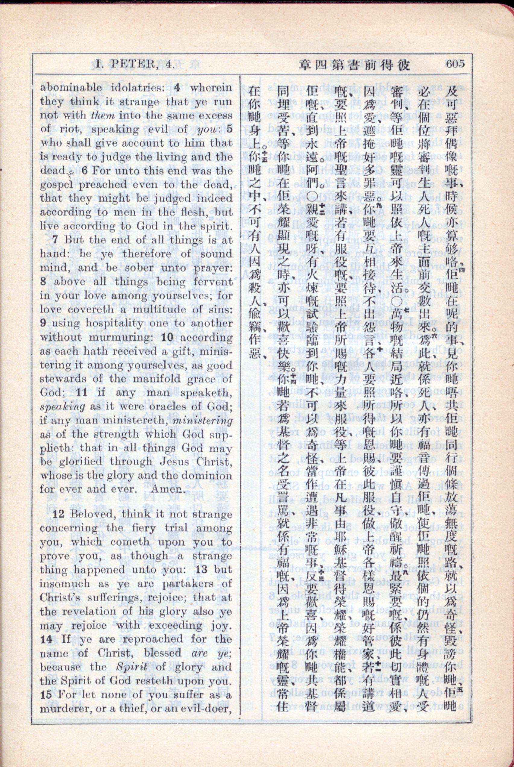 1931年新約全書廣東話新譯本與美國新譯英文 彼得前書 4 章 4 節到 4 章 15 節