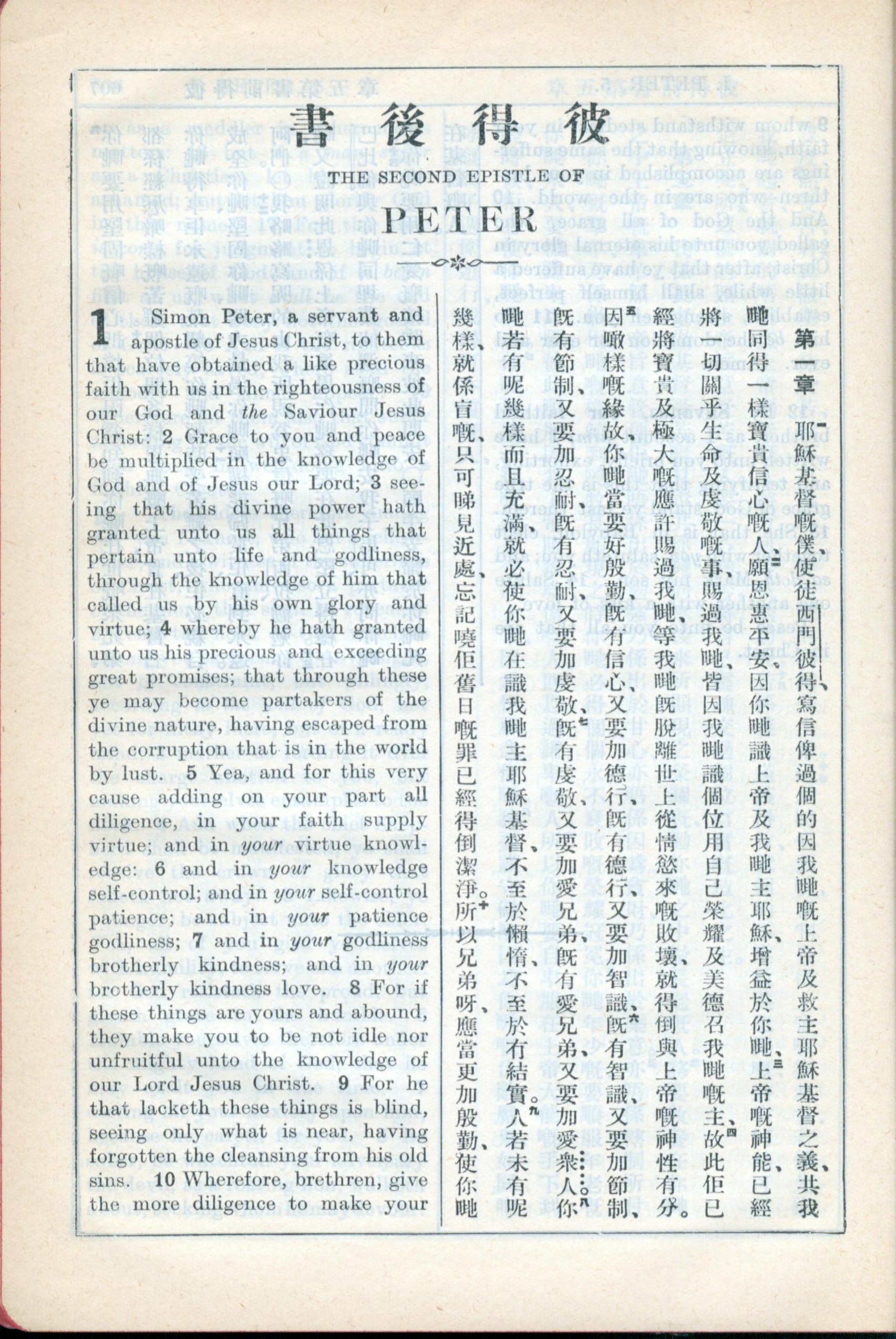 1931年新約全書廣東話新譯本與美國新譯英文 彼得後書 1 章 1 節到 1 章 10 節
