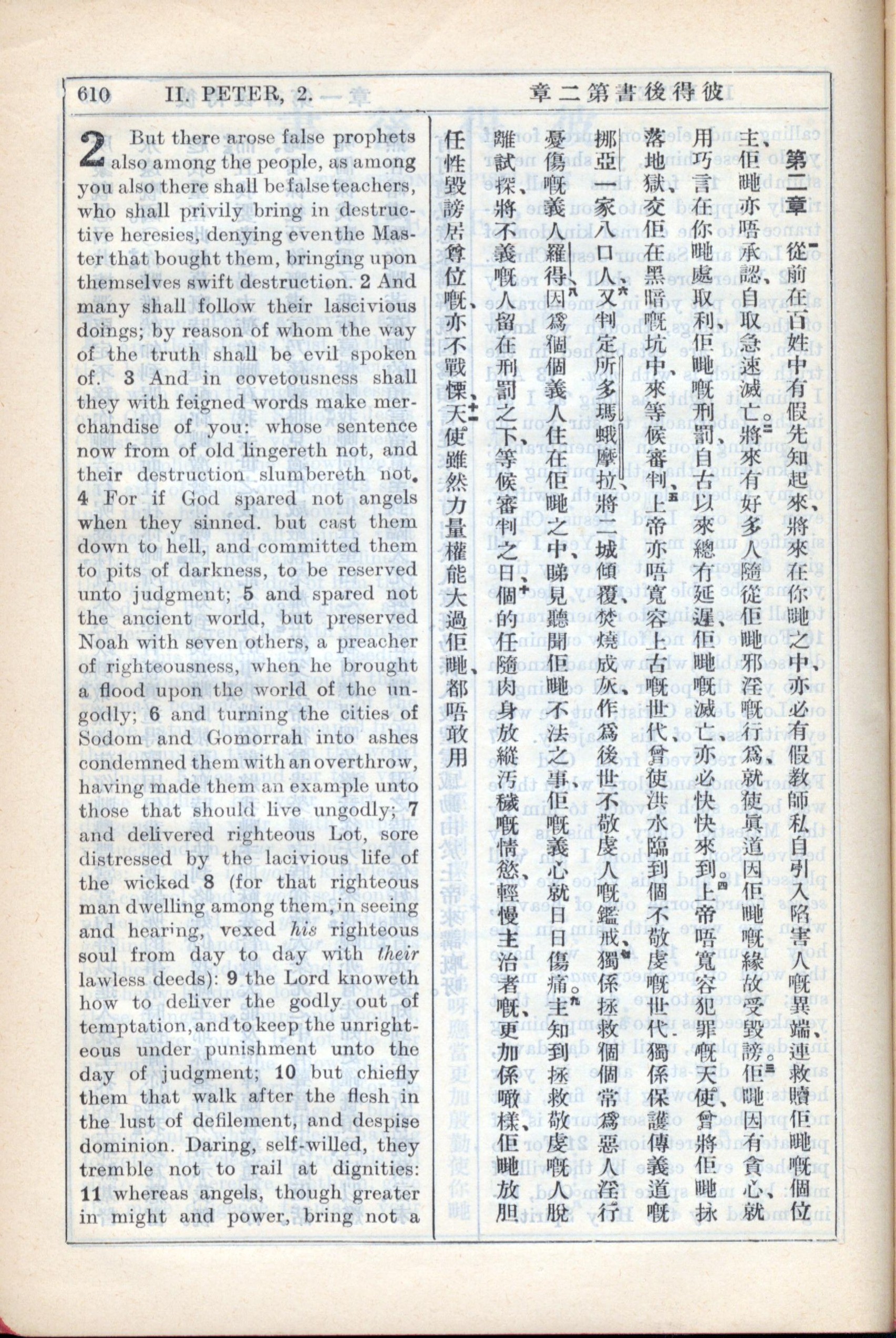 1931年新約全書廣東話新譯本與美國新譯英文 彼得後書 2 章 1 節到 2 章 11 節