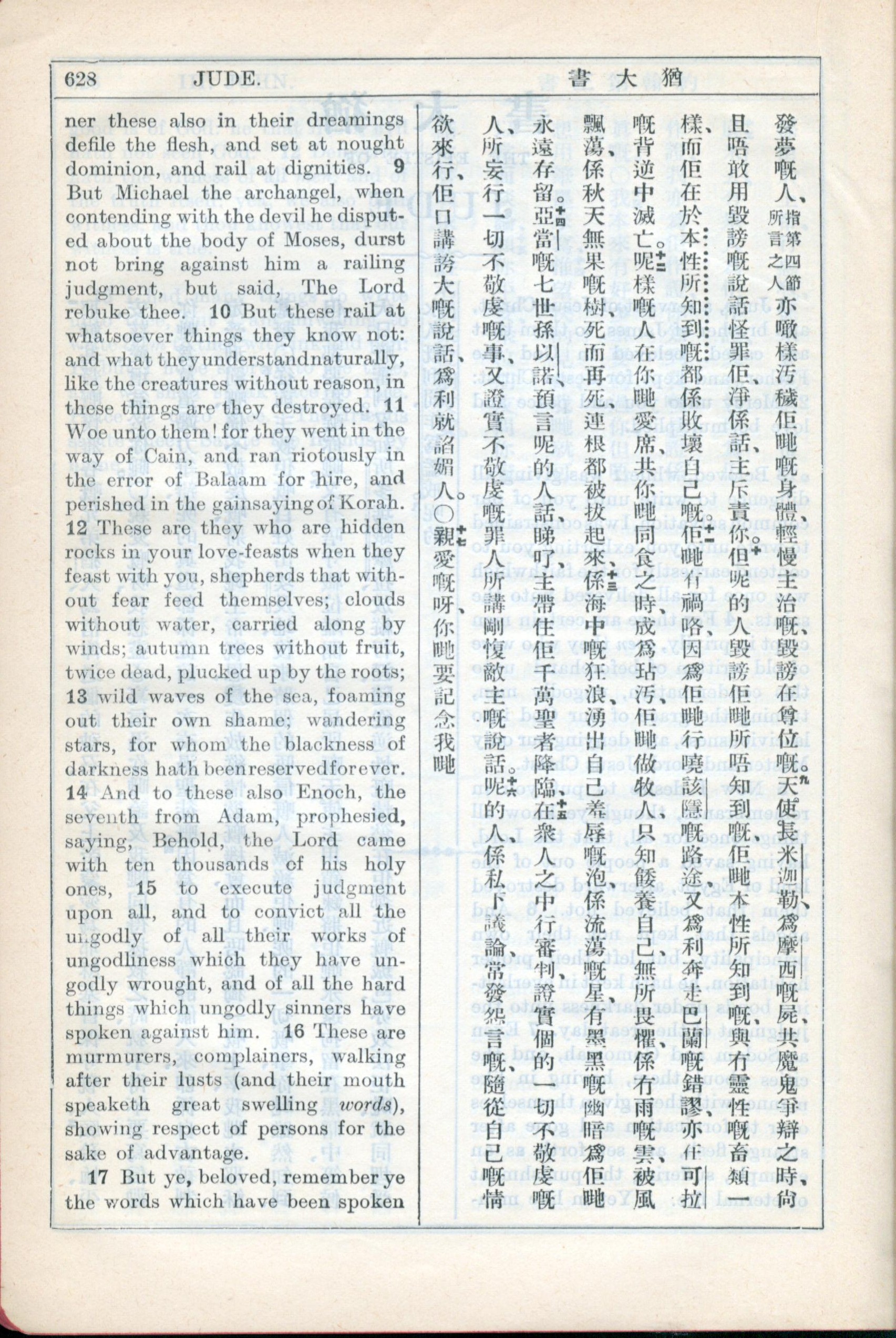 1931年新約全書廣東話新譯本與美國新譯英文 猶大書 1 章 8 節到 1 章 17 節