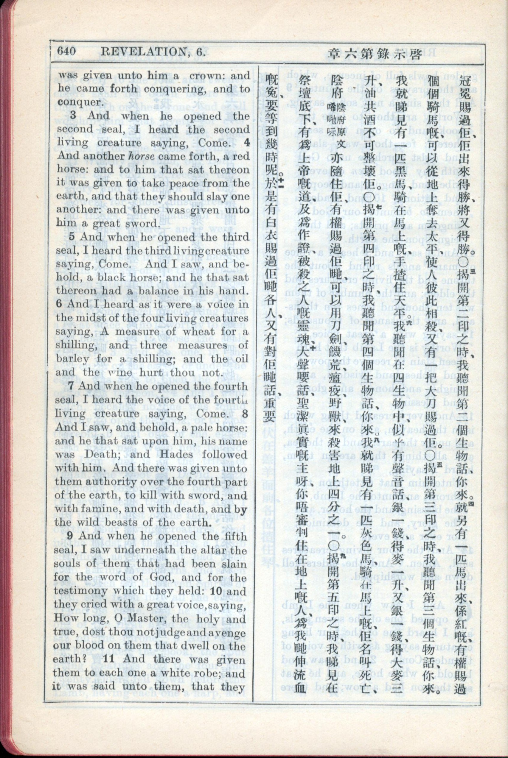 1931年新約全書廣東話新譯本與美國新譯英文 啟示錄 6 章 3 節到 6 章 11 節