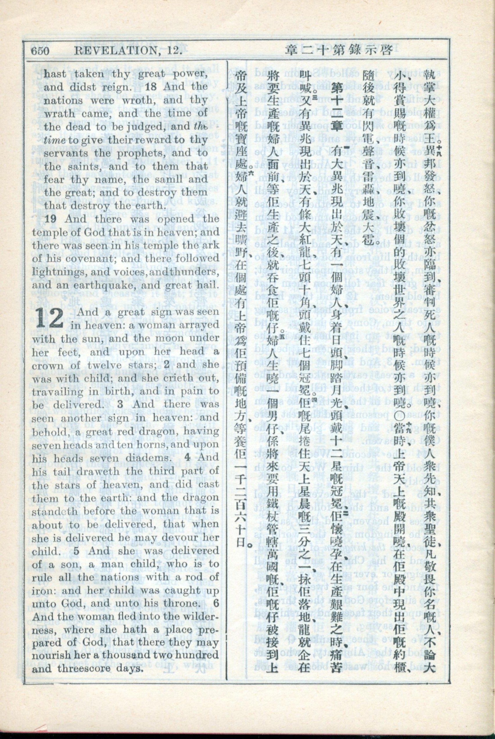 1931年新約全書廣東話新譯本與美國新譯英文 啟示錄 11 章 18 節到 12 章 6 節