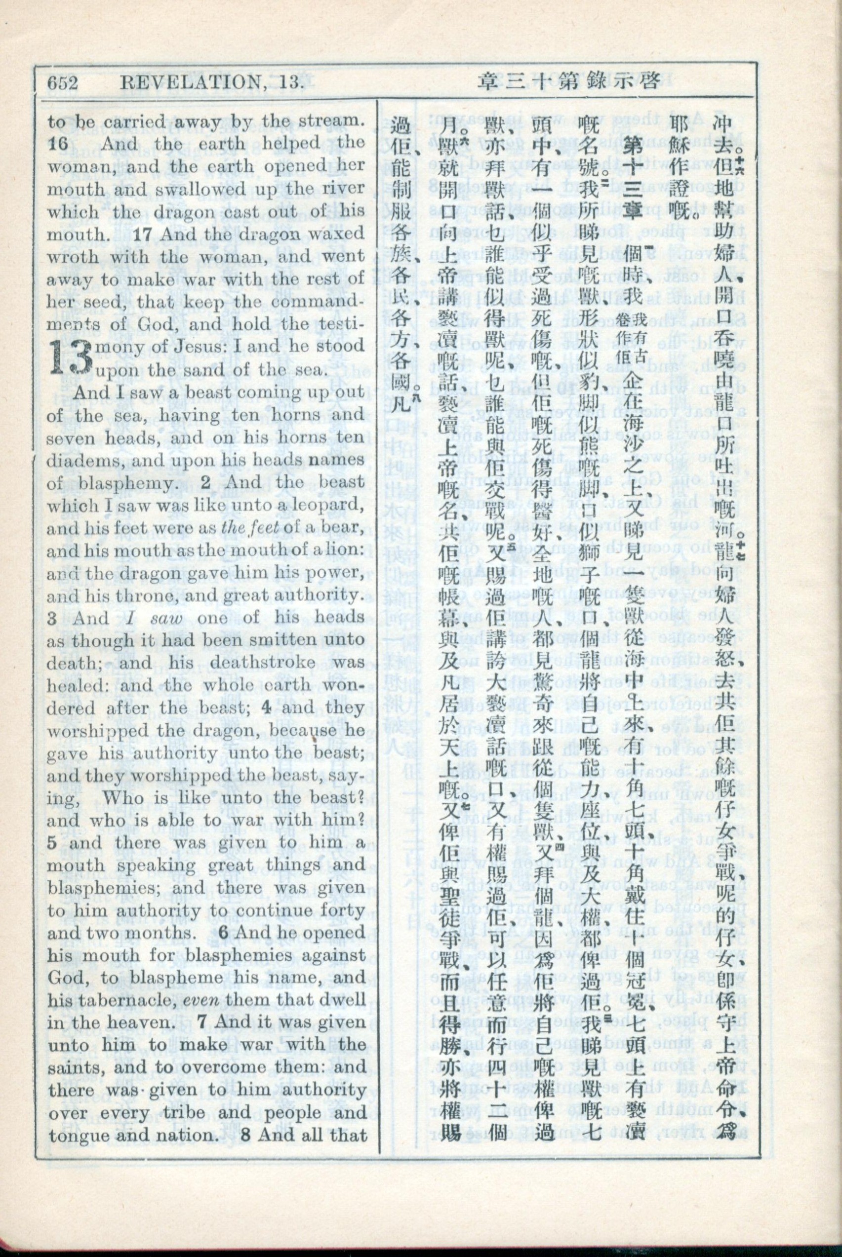 1931年新約全書廣東話新譯本與美國新譯英文 啟示錄 12 章 16 節到 13 章 7 節