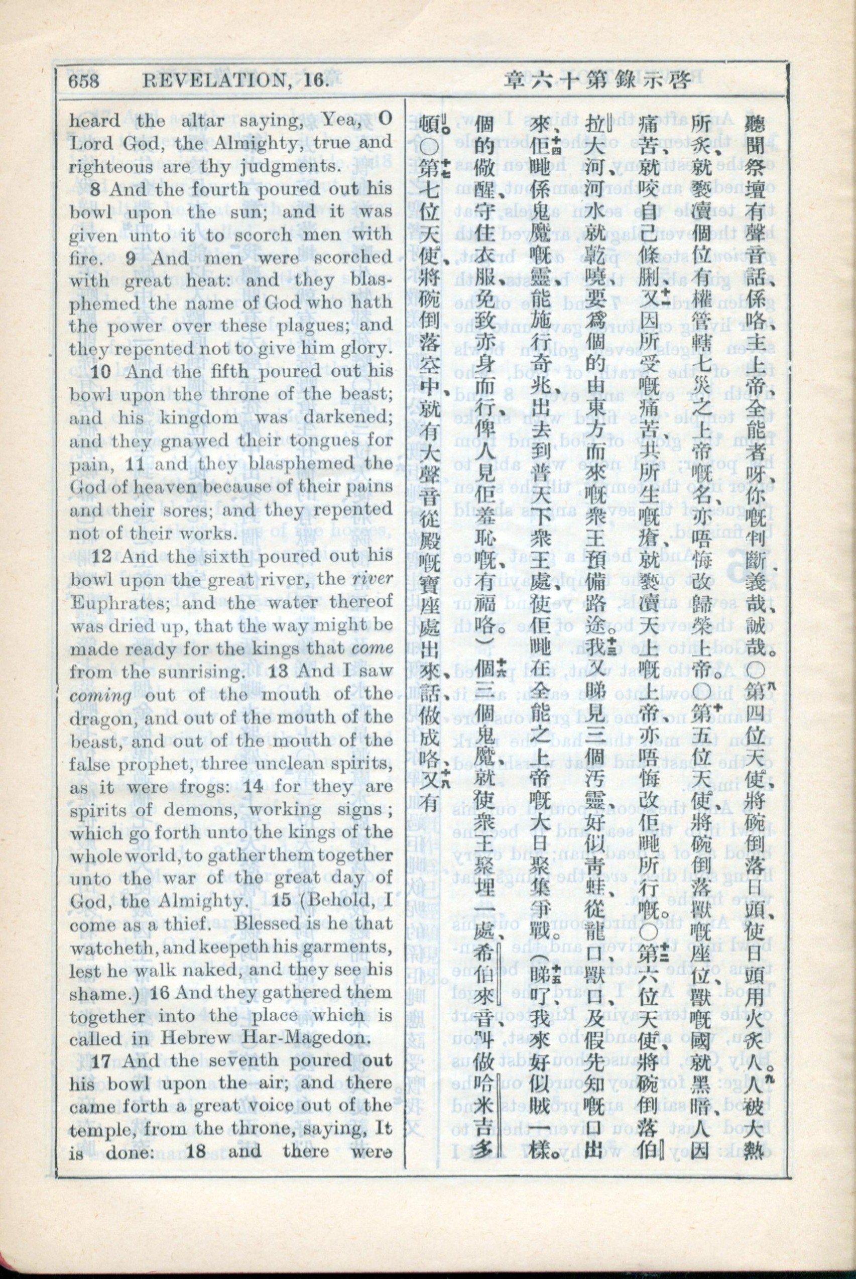 1931年新約全書廣東話新譯本與美國新譯英文 啟示錄 16 章 7 節到 16 章 17 節