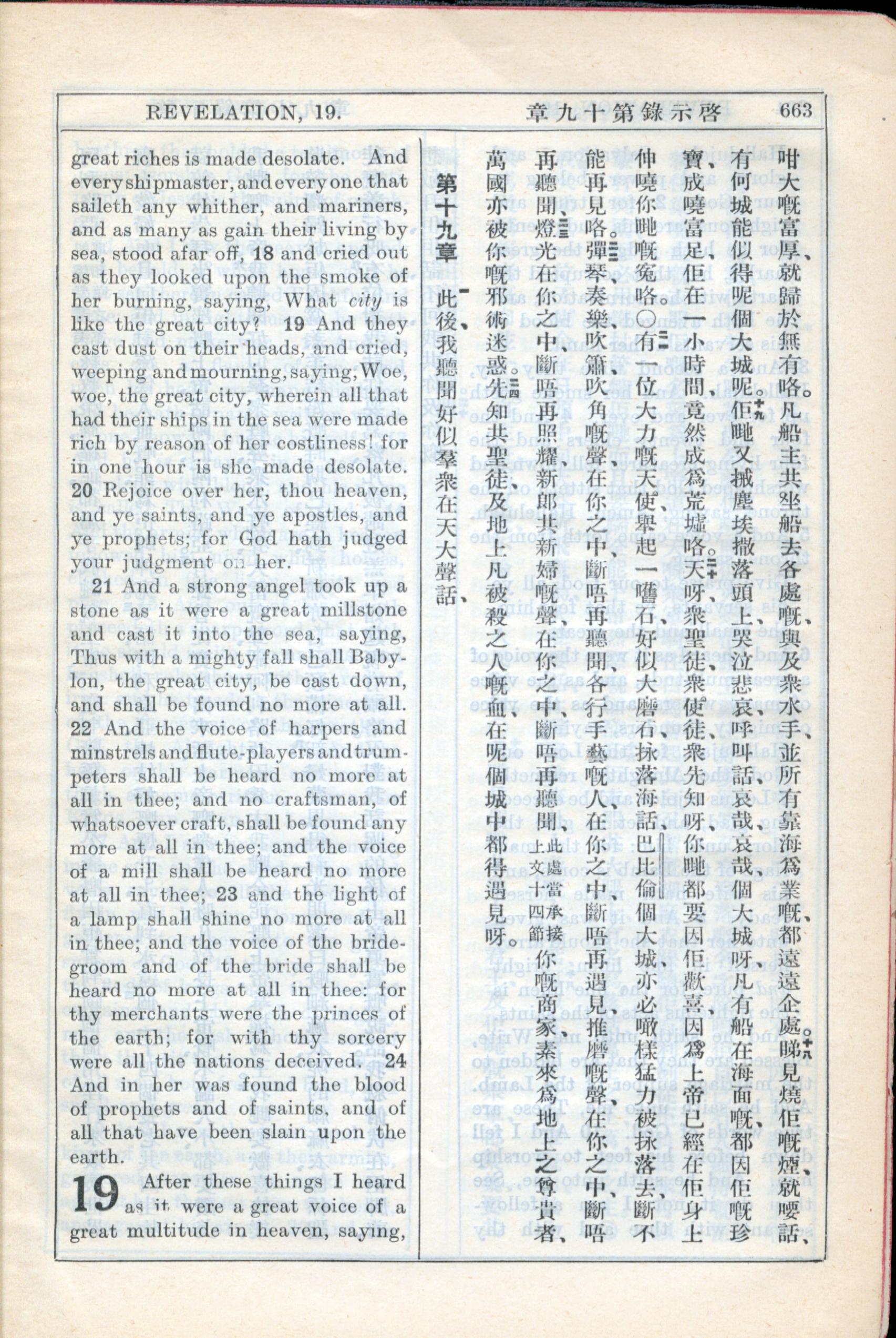 1931年新約全書廣東話新譯本與美國新譯英文 啟示錄 18 章 17 節到 19 章 1 節