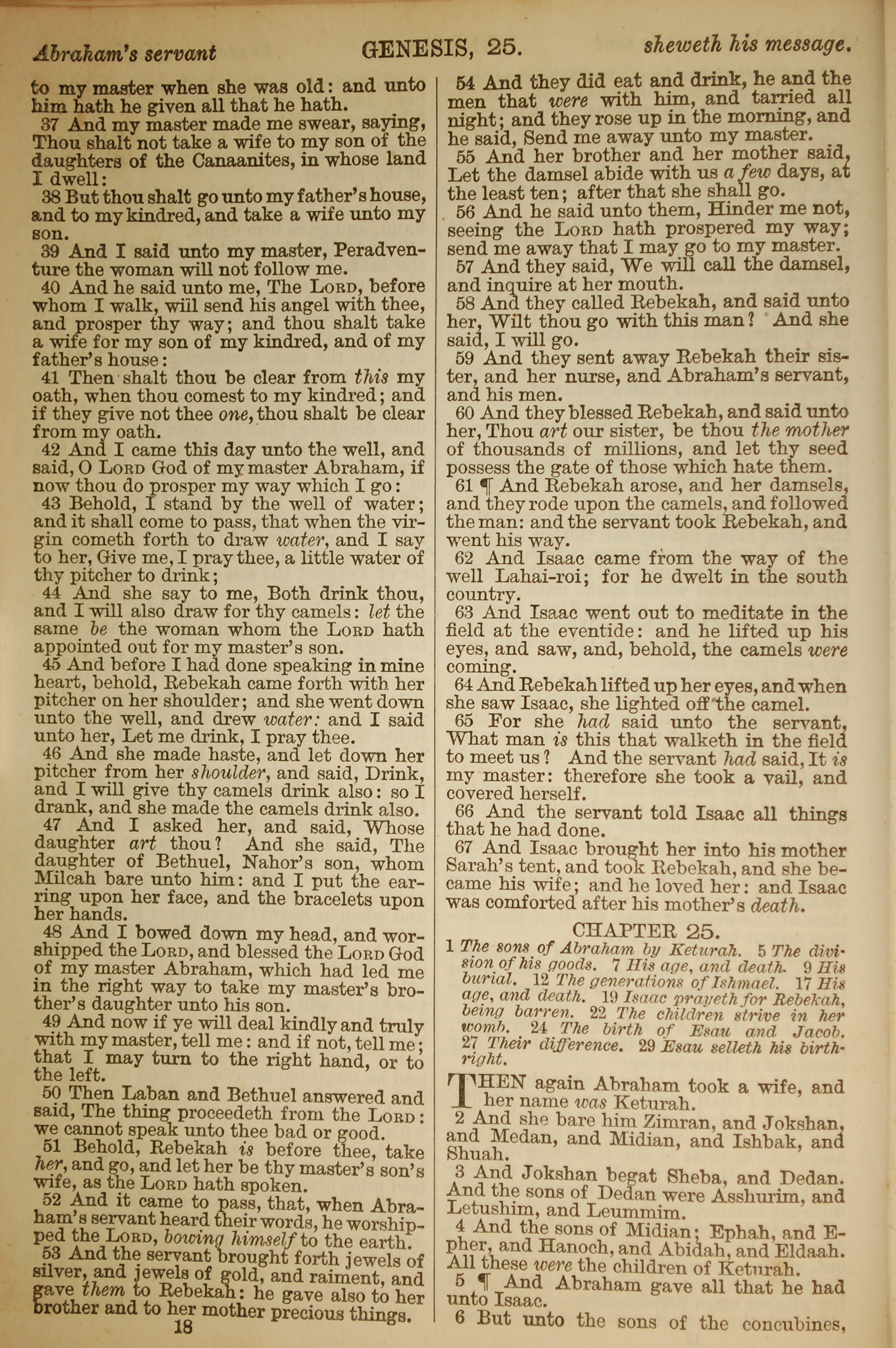 1886年英文聖經 創世記 24 章 37 節到 25 章 6 節