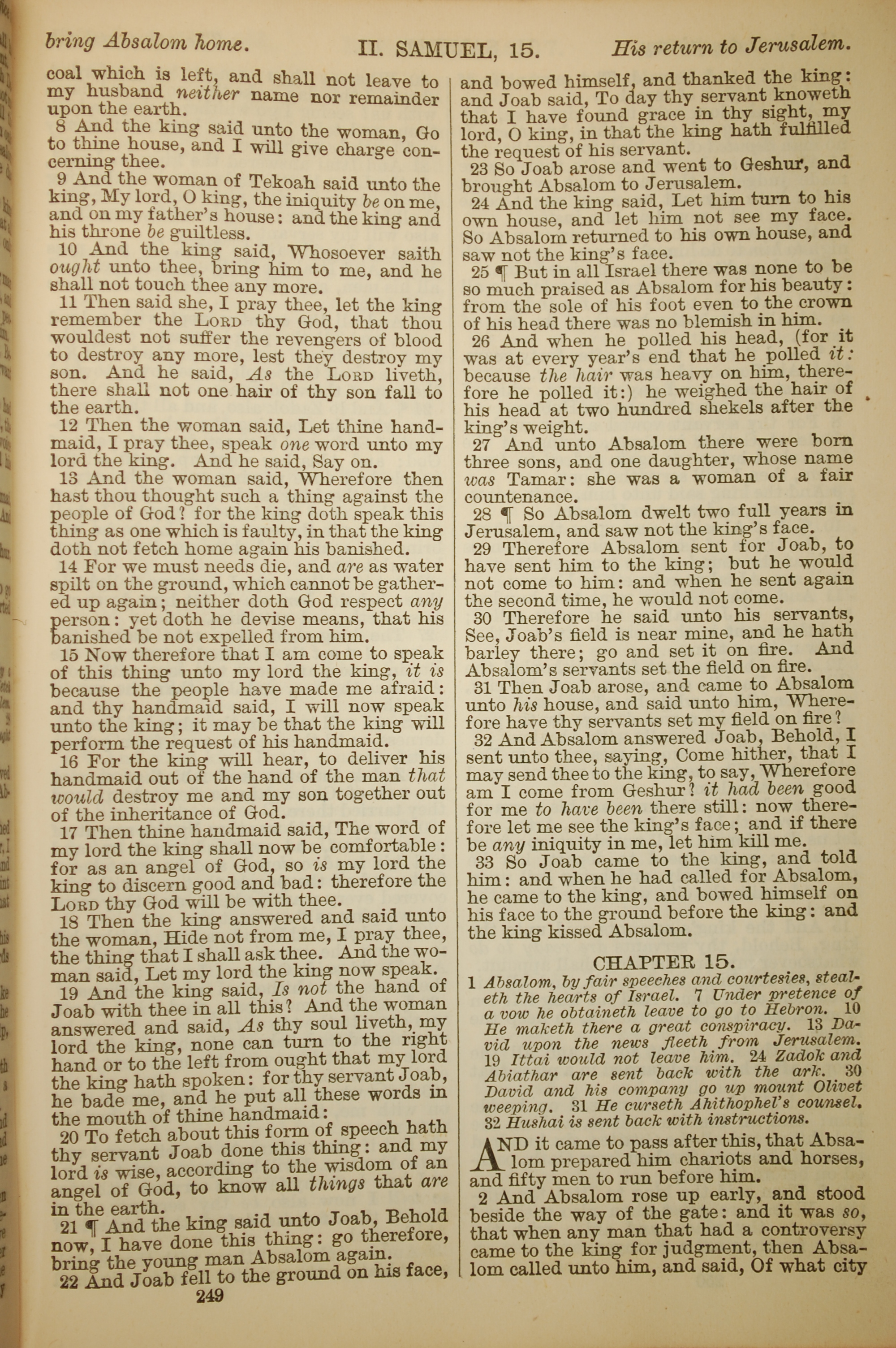 1886年英文聖經 撒母耳記下 14 章 8 節到 15 章 2 節