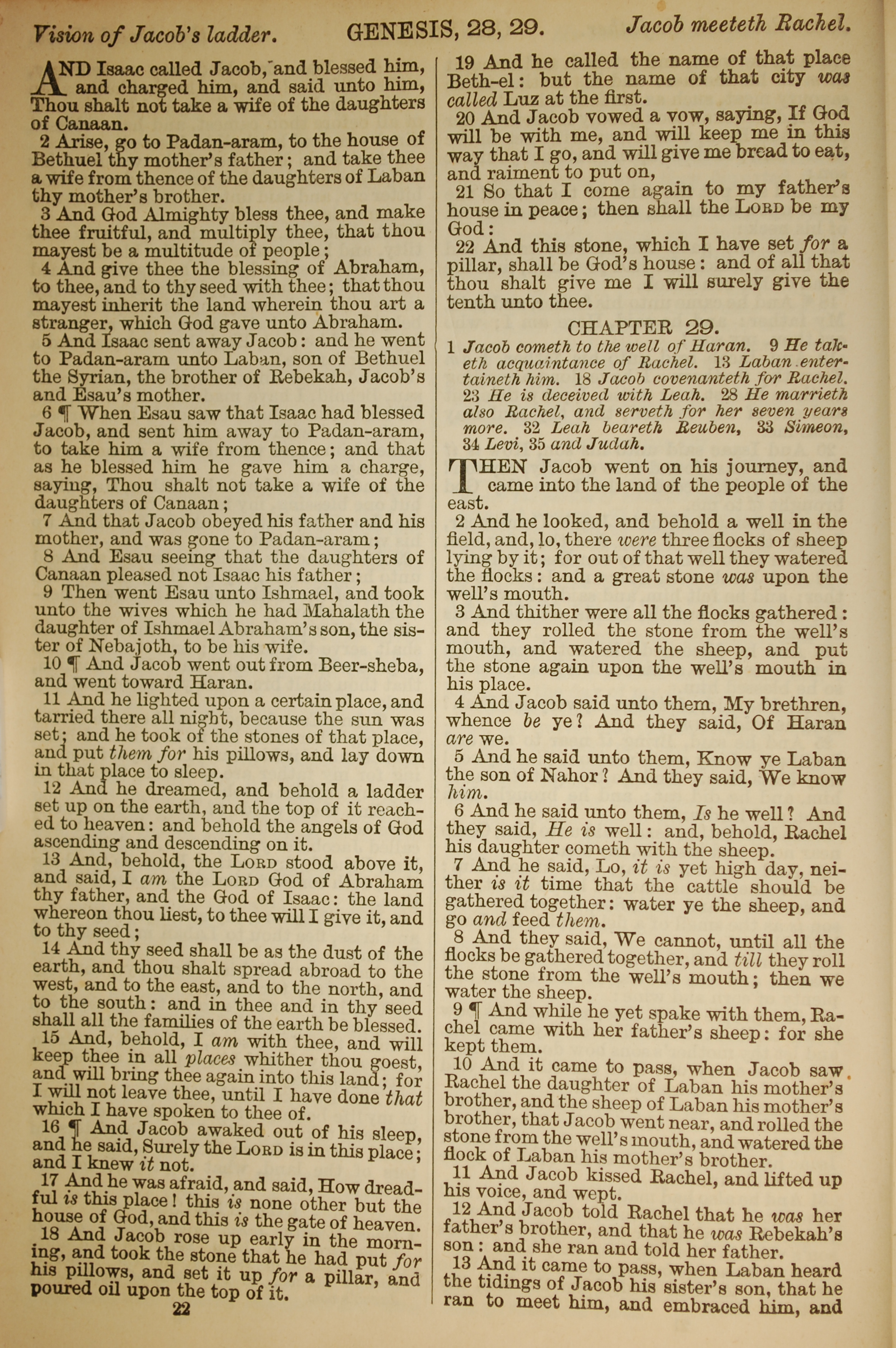 1886年英文聖經 創世記 28 章 1 節到 29 章 13 節
