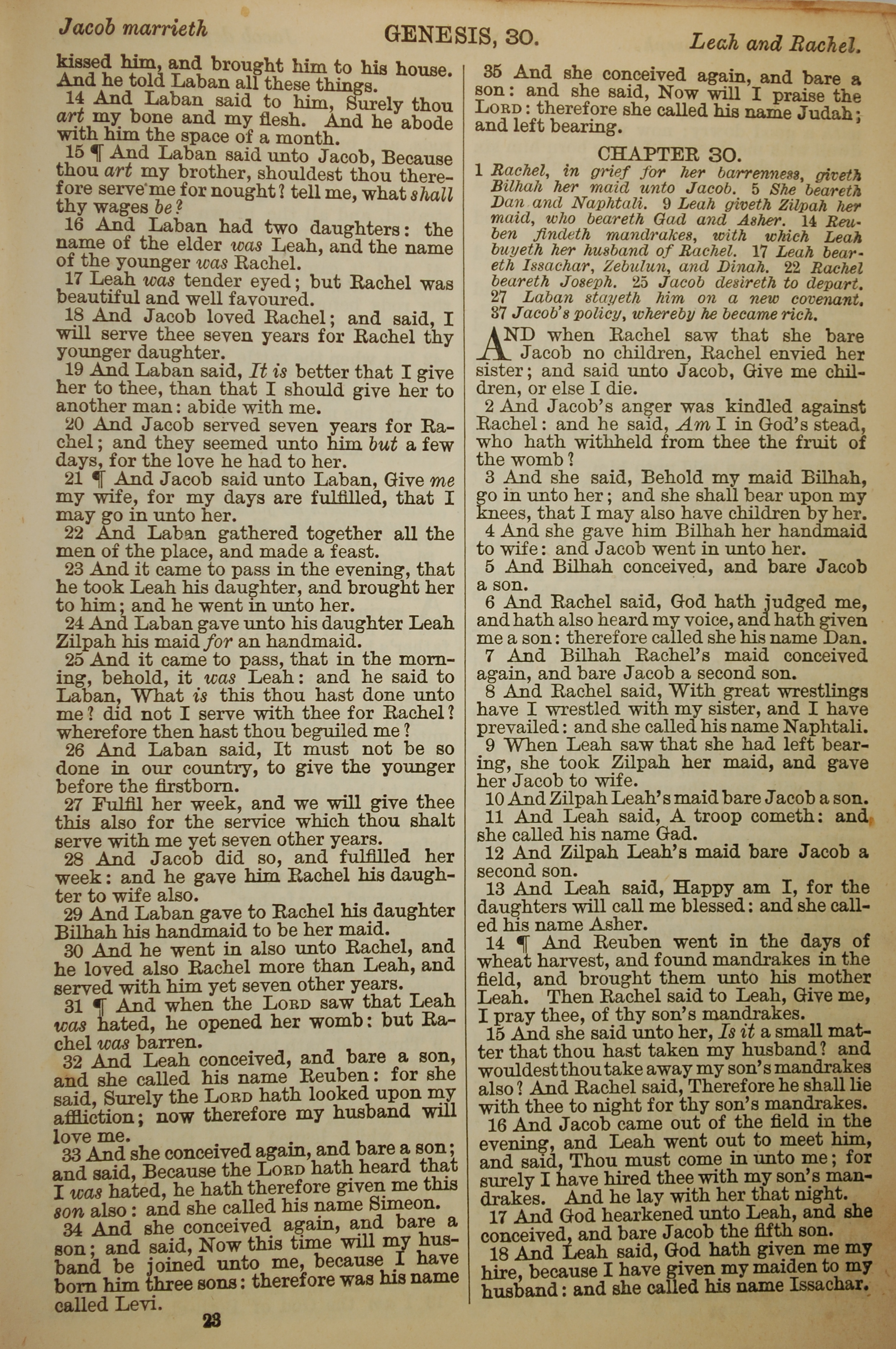 1886年英文聖經 創世記 29 章 14 節到 30 章 18 節