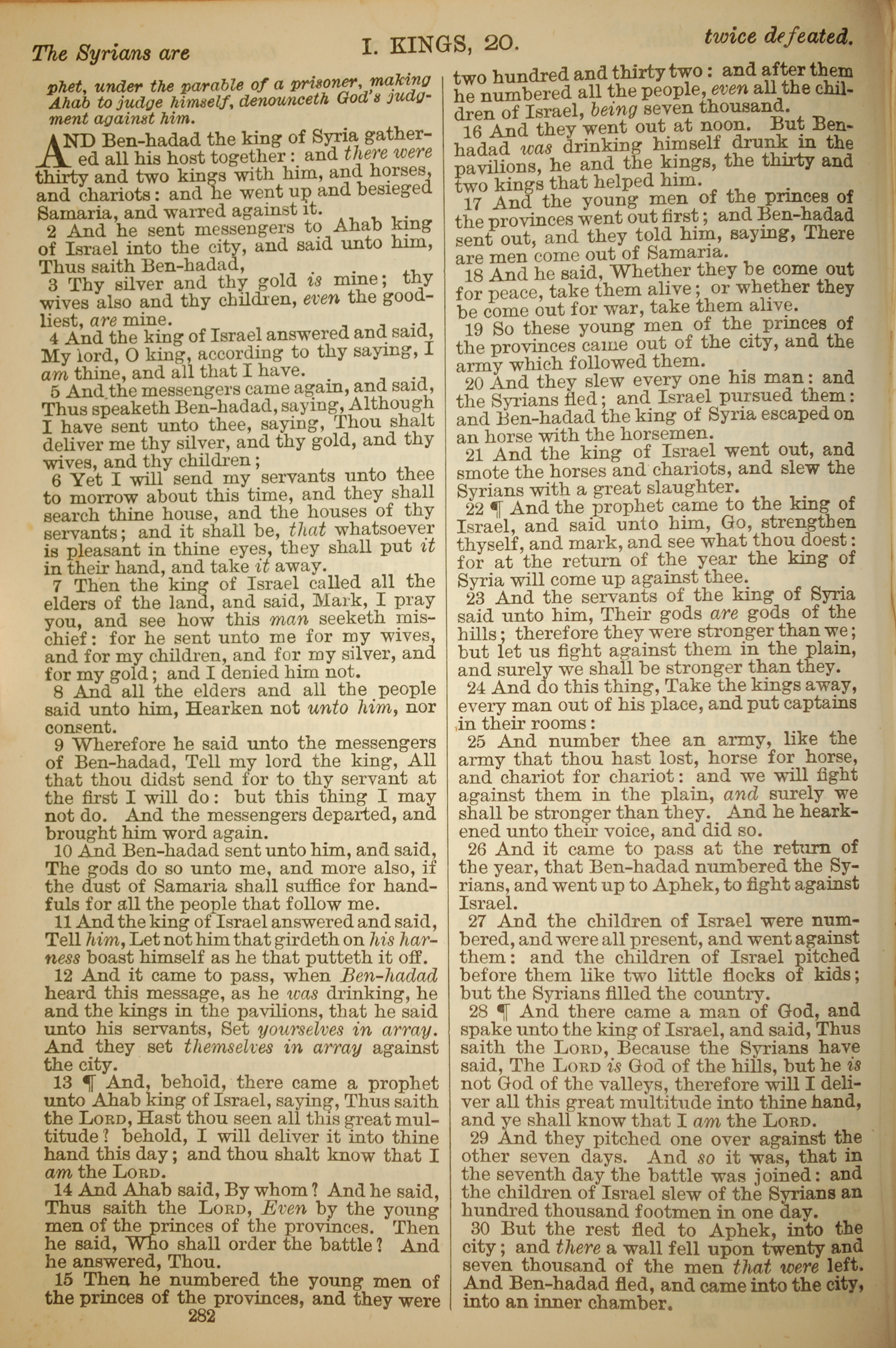 1886年英文聖經 列王紀上 20 章 1 節到 20 章 30 節