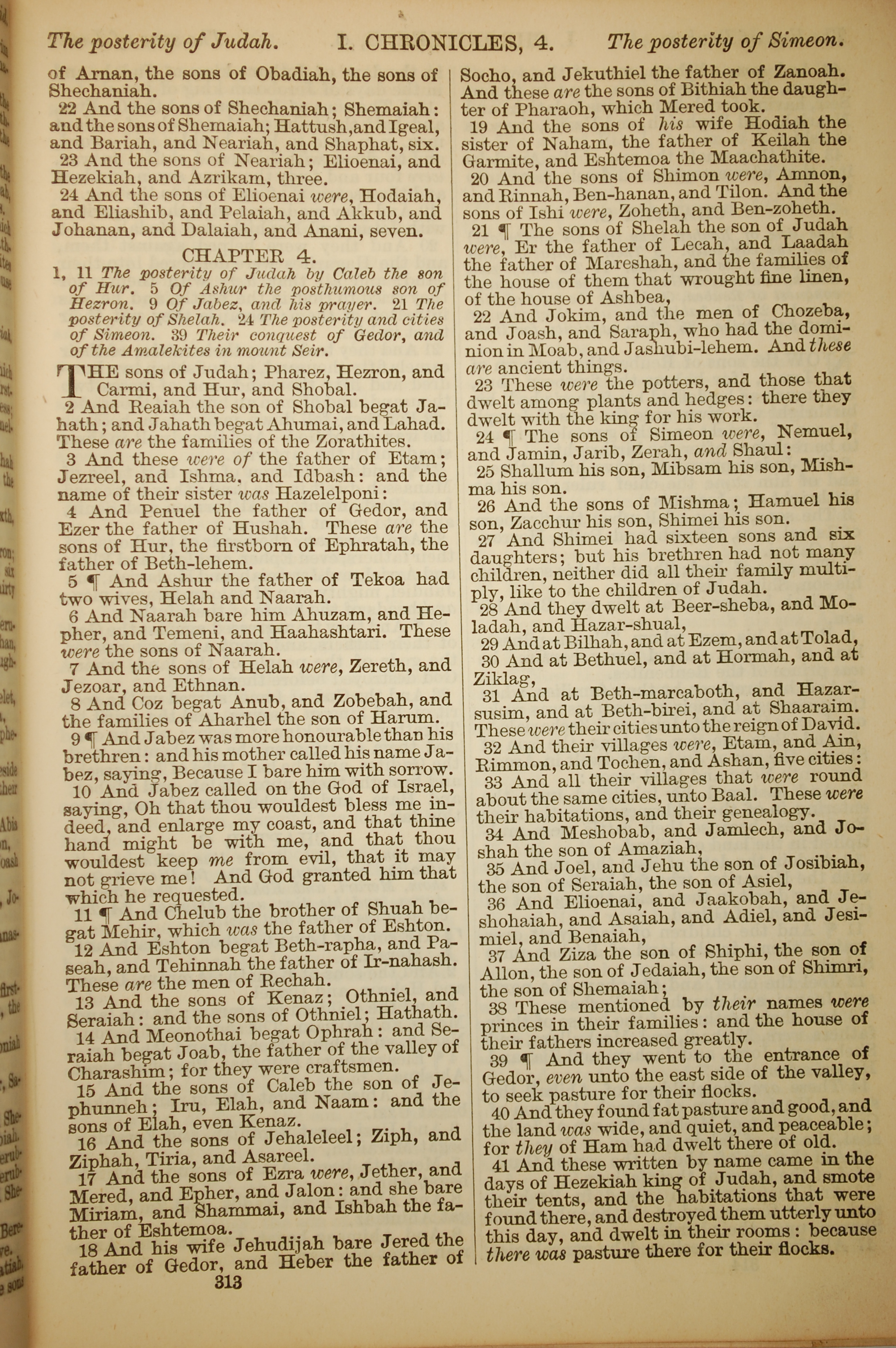 1886年英文聖經 歷代志上 3 章 22 節到 4 章 41 節