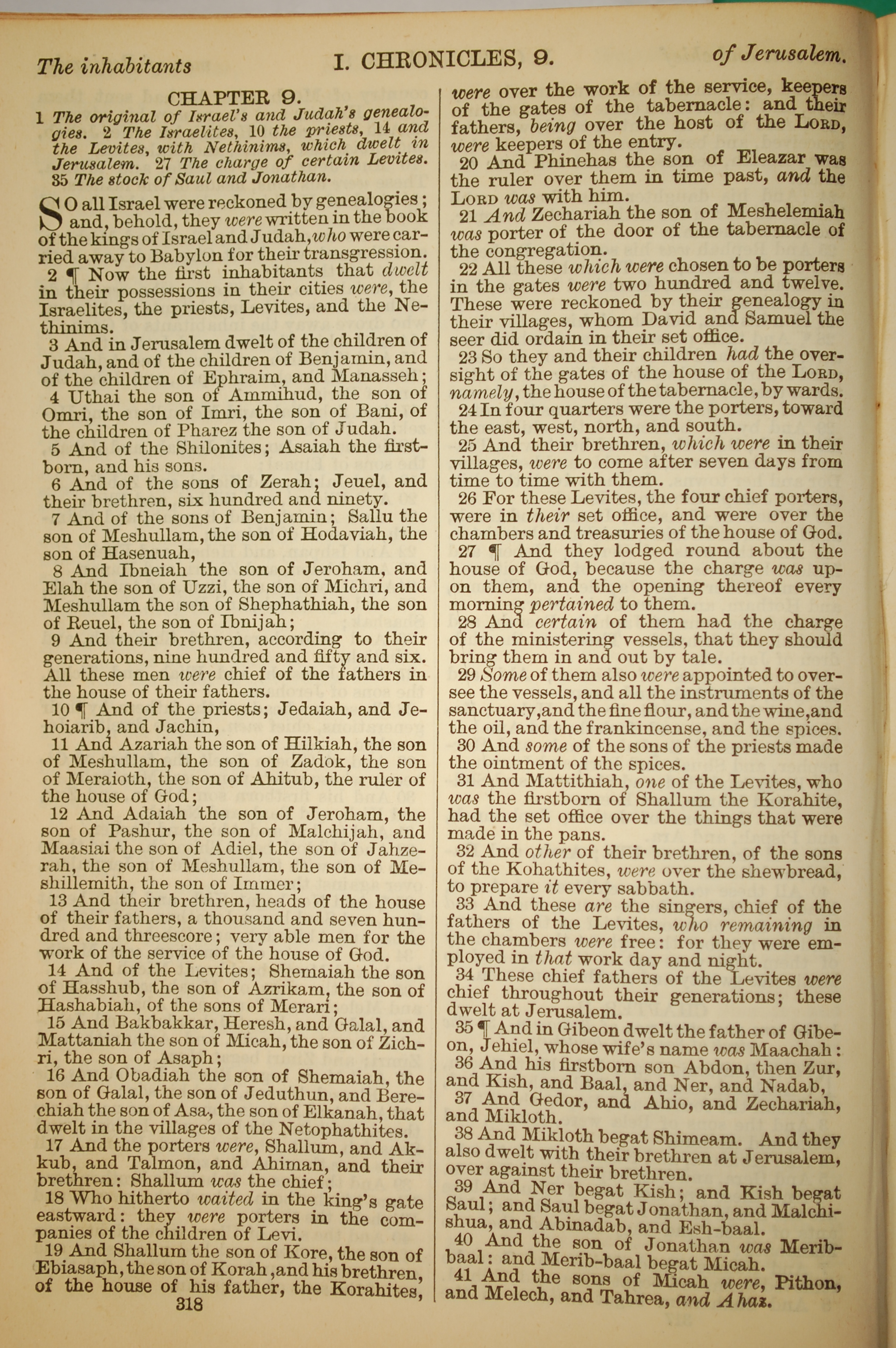 1886年英文聖經 歷代志上 9 章 1 節到 9 章 41 節