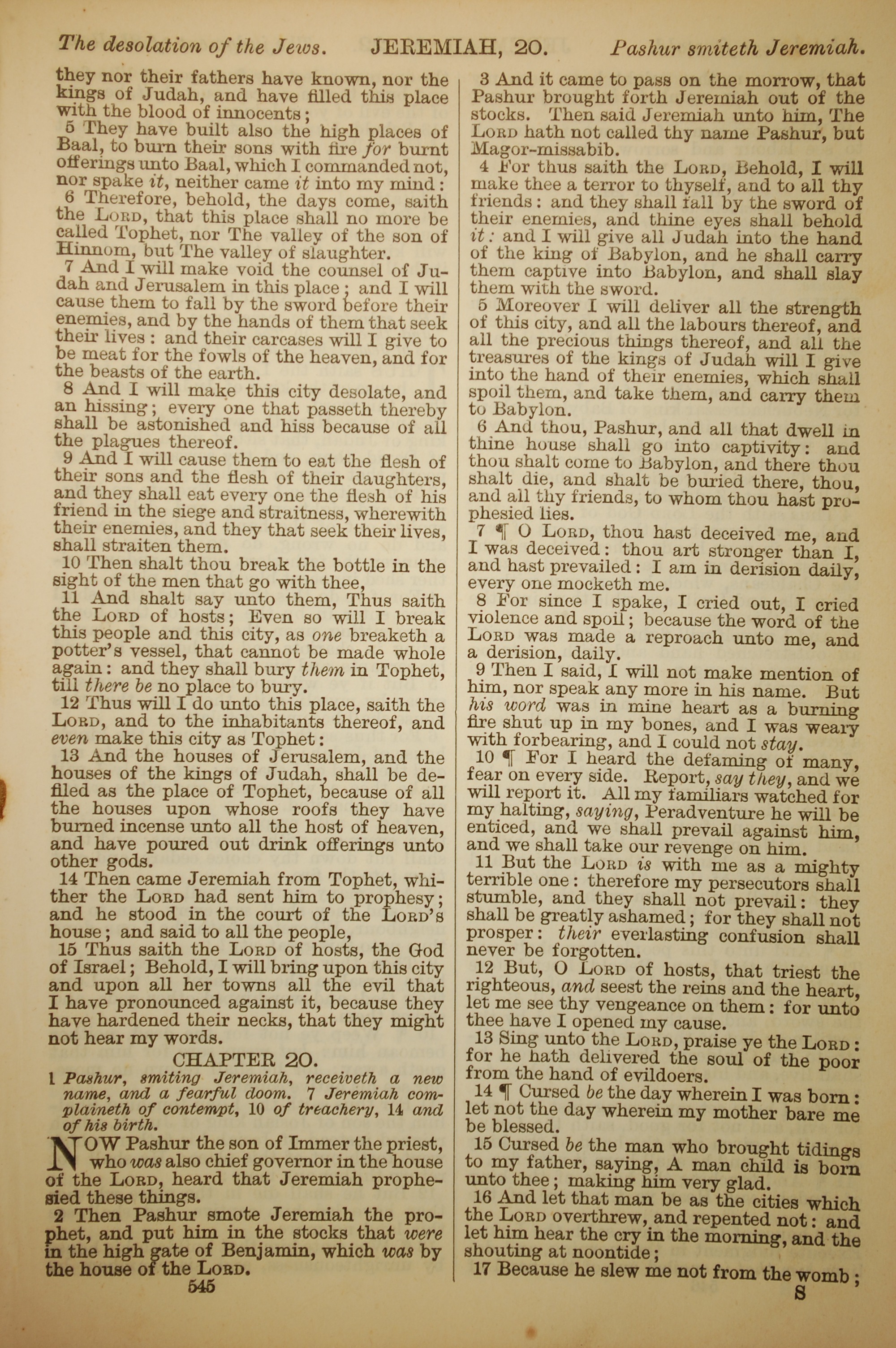 1886年英文聖經 耶利米書 19 章 5 節到 20 章 17 節