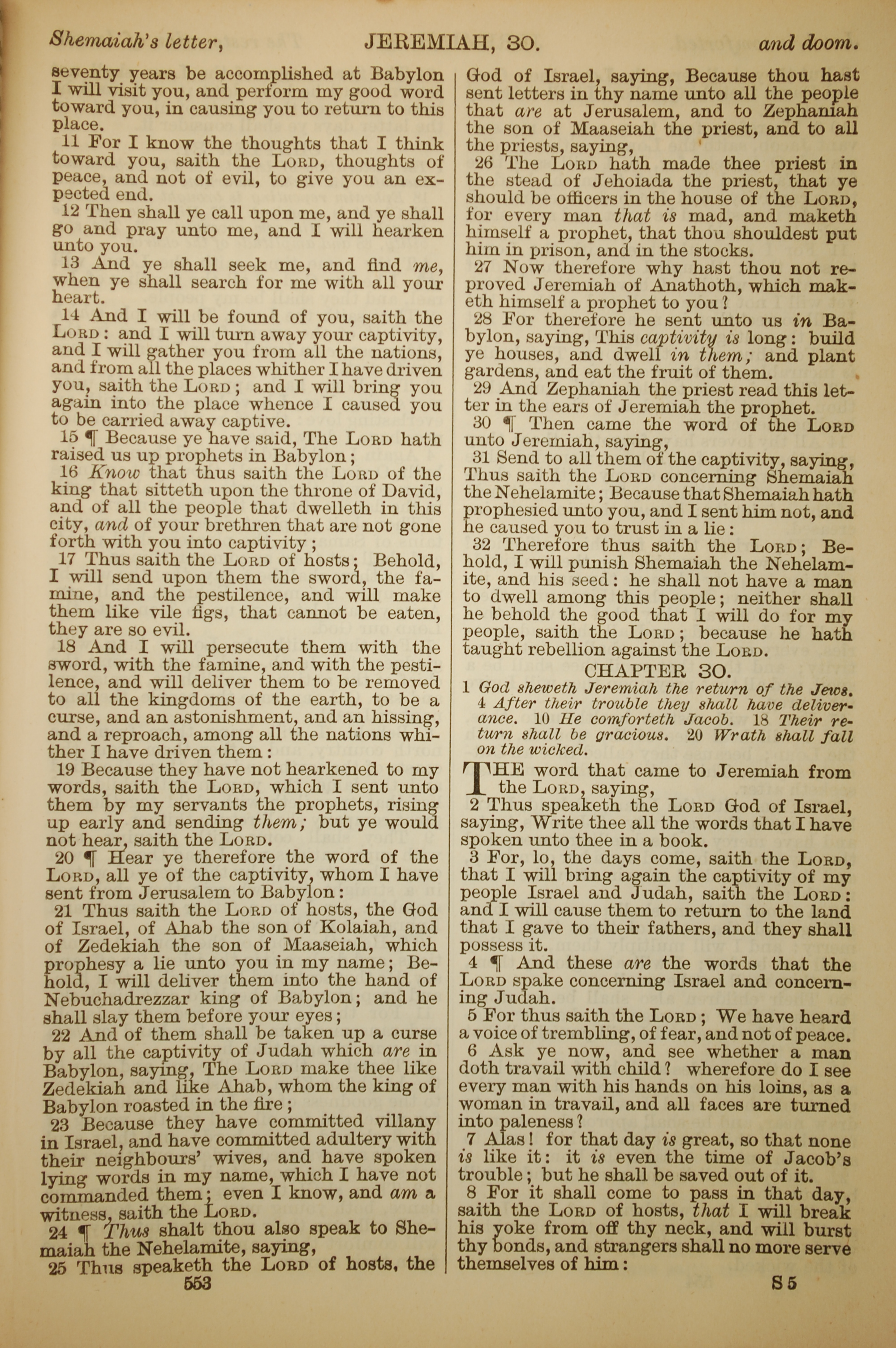 1886年英文聖經 耶利米書 29 章 11 節到 30 章 8 節