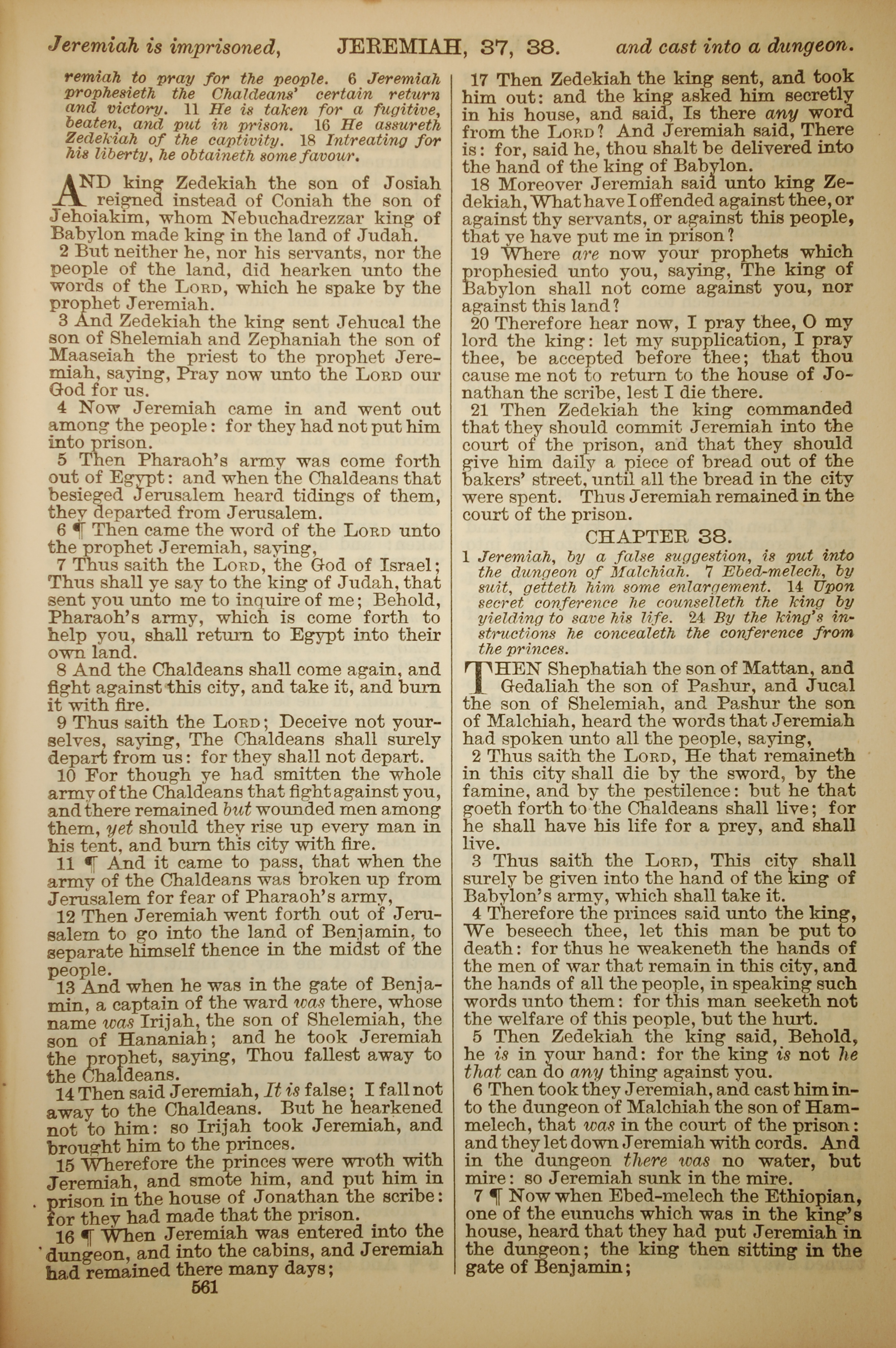 1886年英文聖經 耶利米書 37 章 1 節到 38 章 7 節