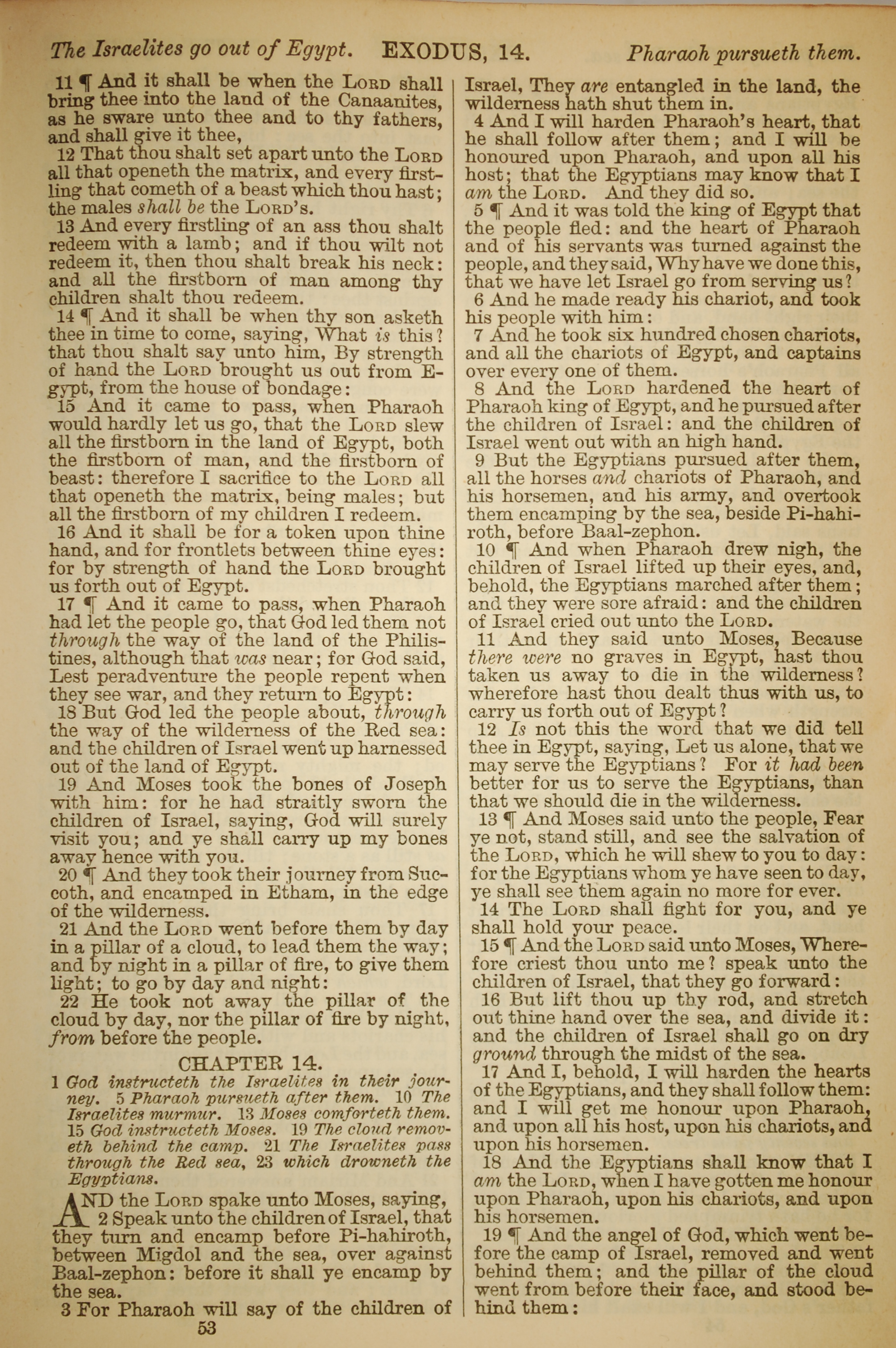 1886年英文聖經 出埃及記 13 章 11 節到 14 章 19 節