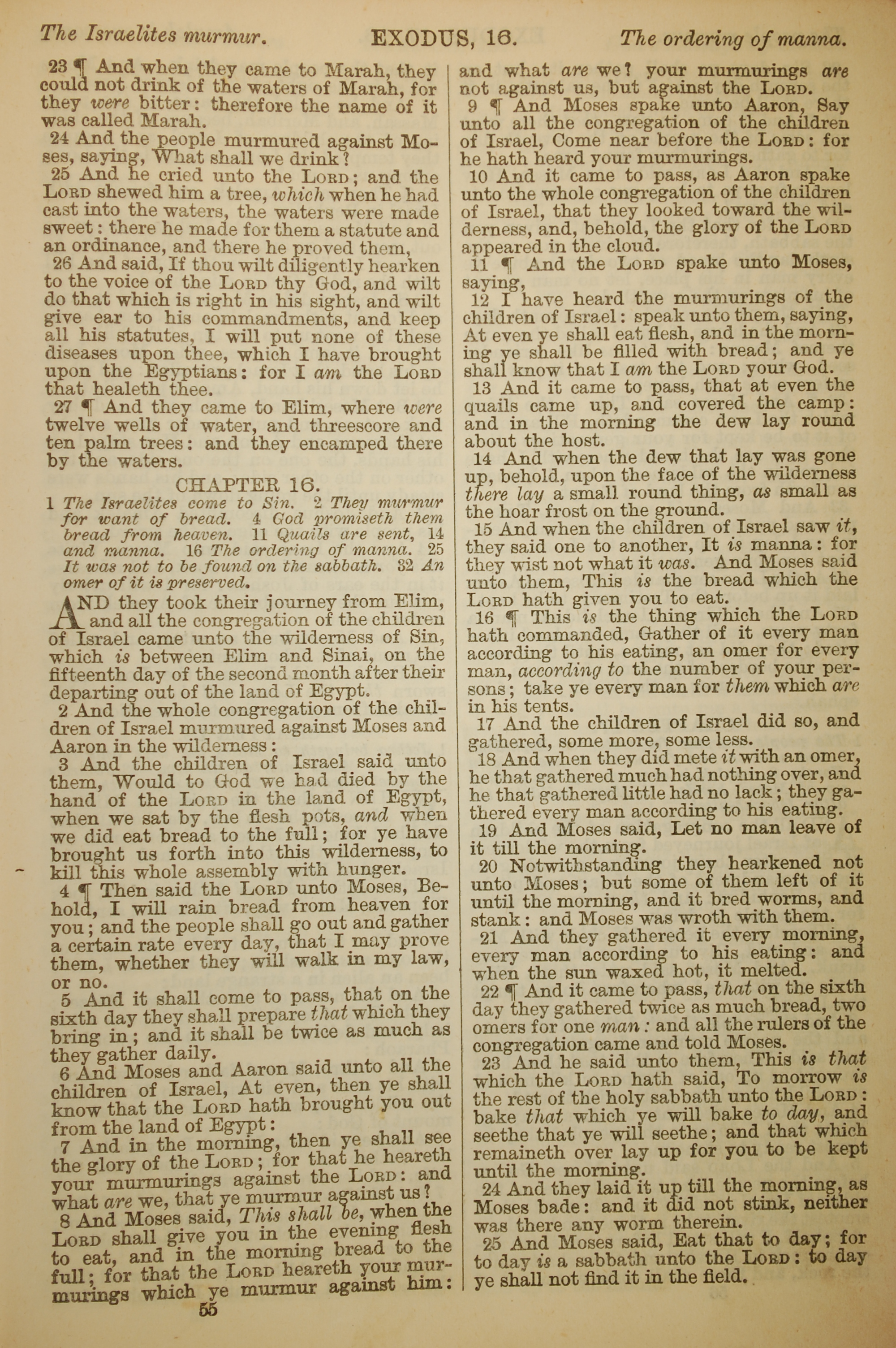 1886年英文聖經 出埃及記 15 章 23 節到 16 章 25 節