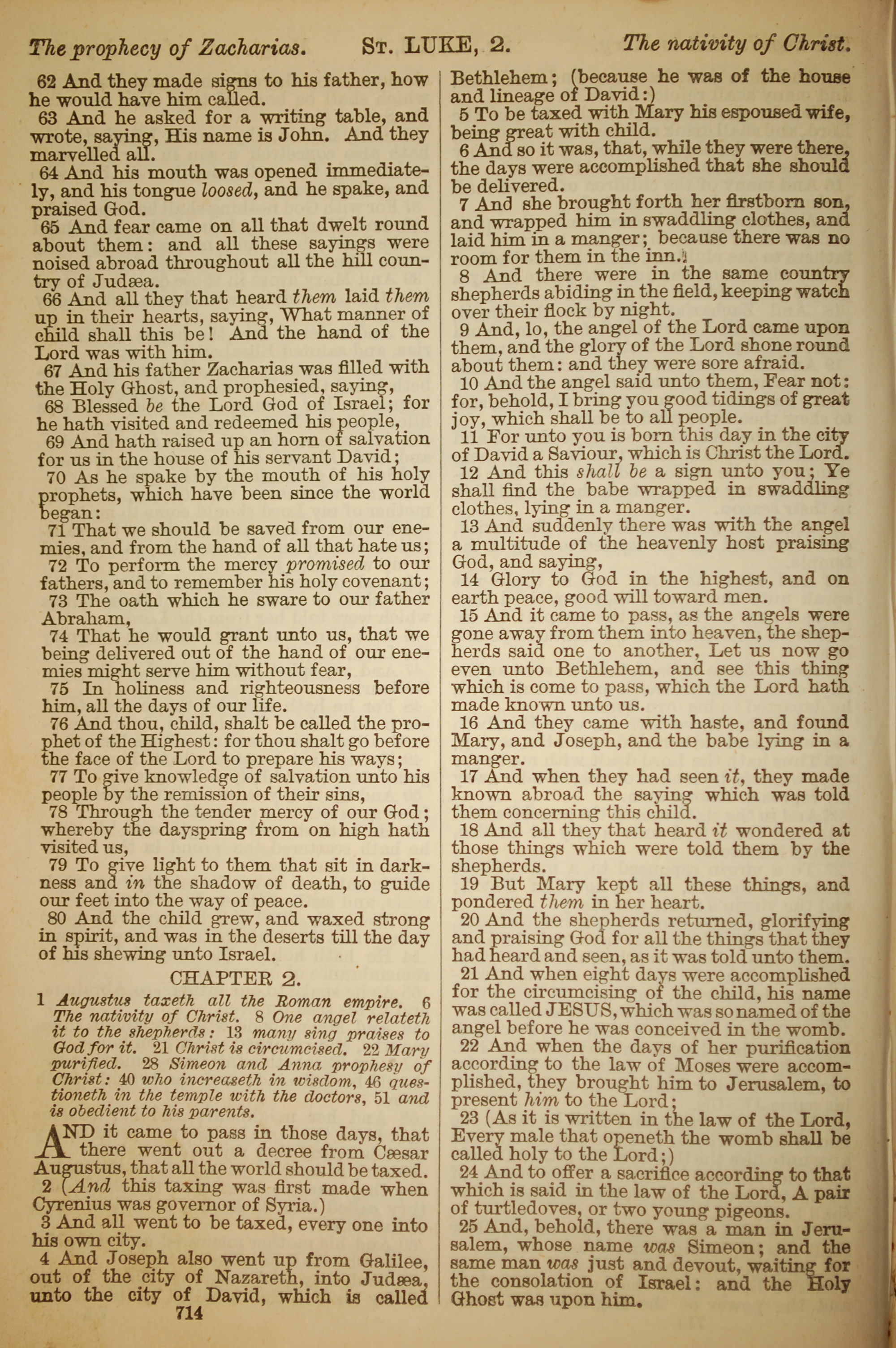1886年英文聖經 路加福音 1 章 62 節到 2 章 25 節