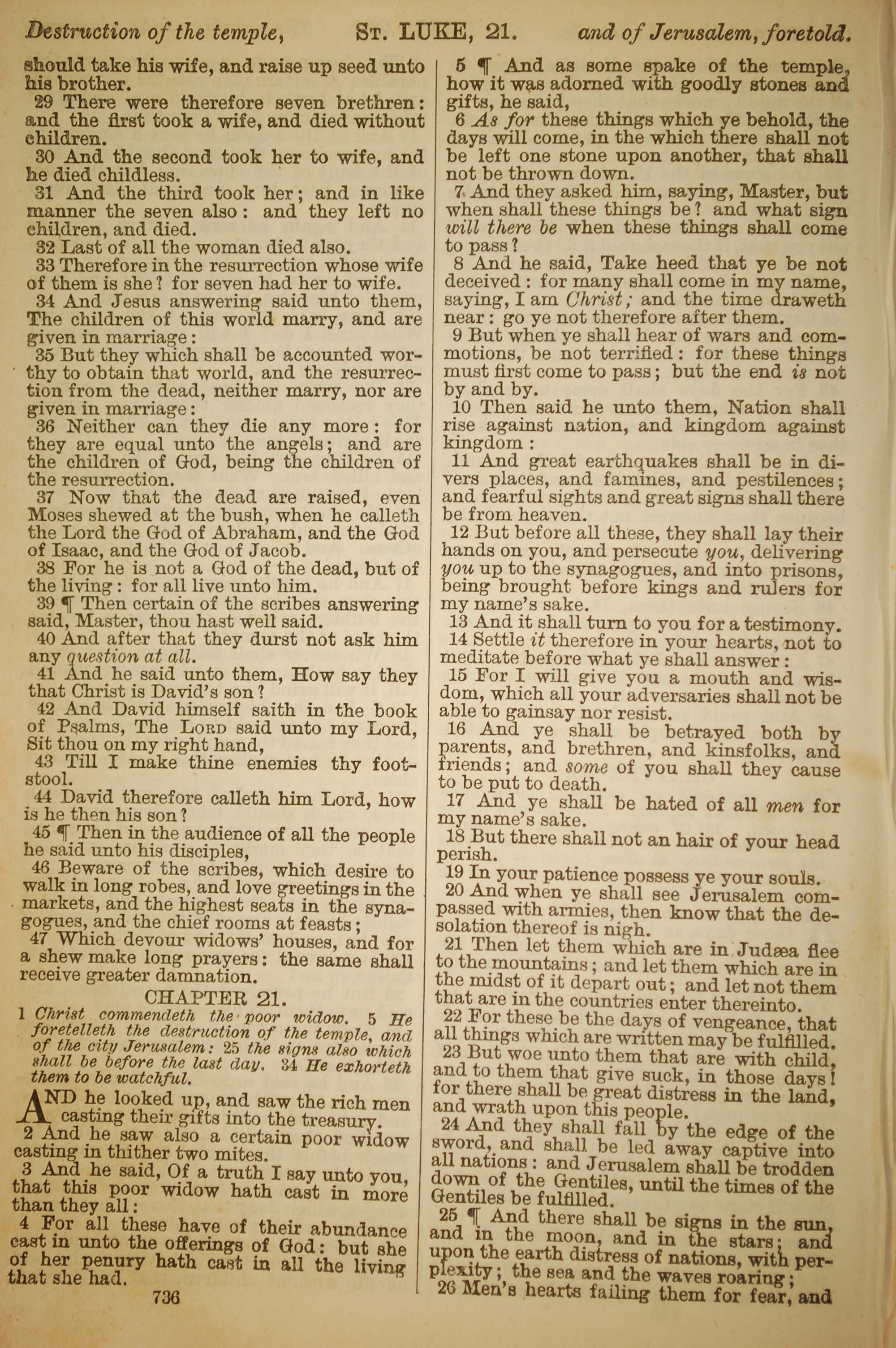 1886年英文聖經 路加福音 20 章 29 節到 21 章 26 節