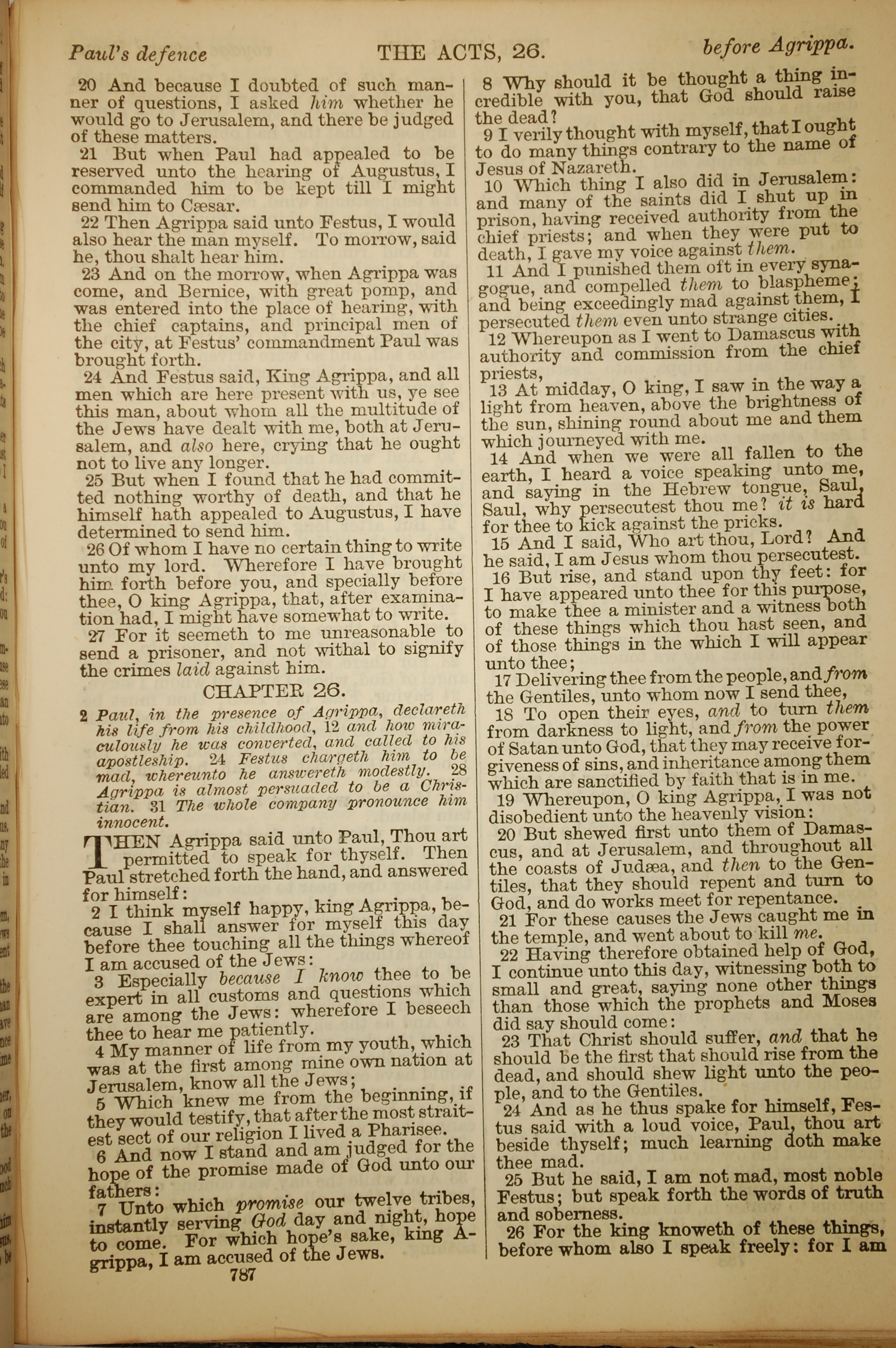 1886年英文聖經 使徒行傳 25 章 20 節到 26 章 26 節