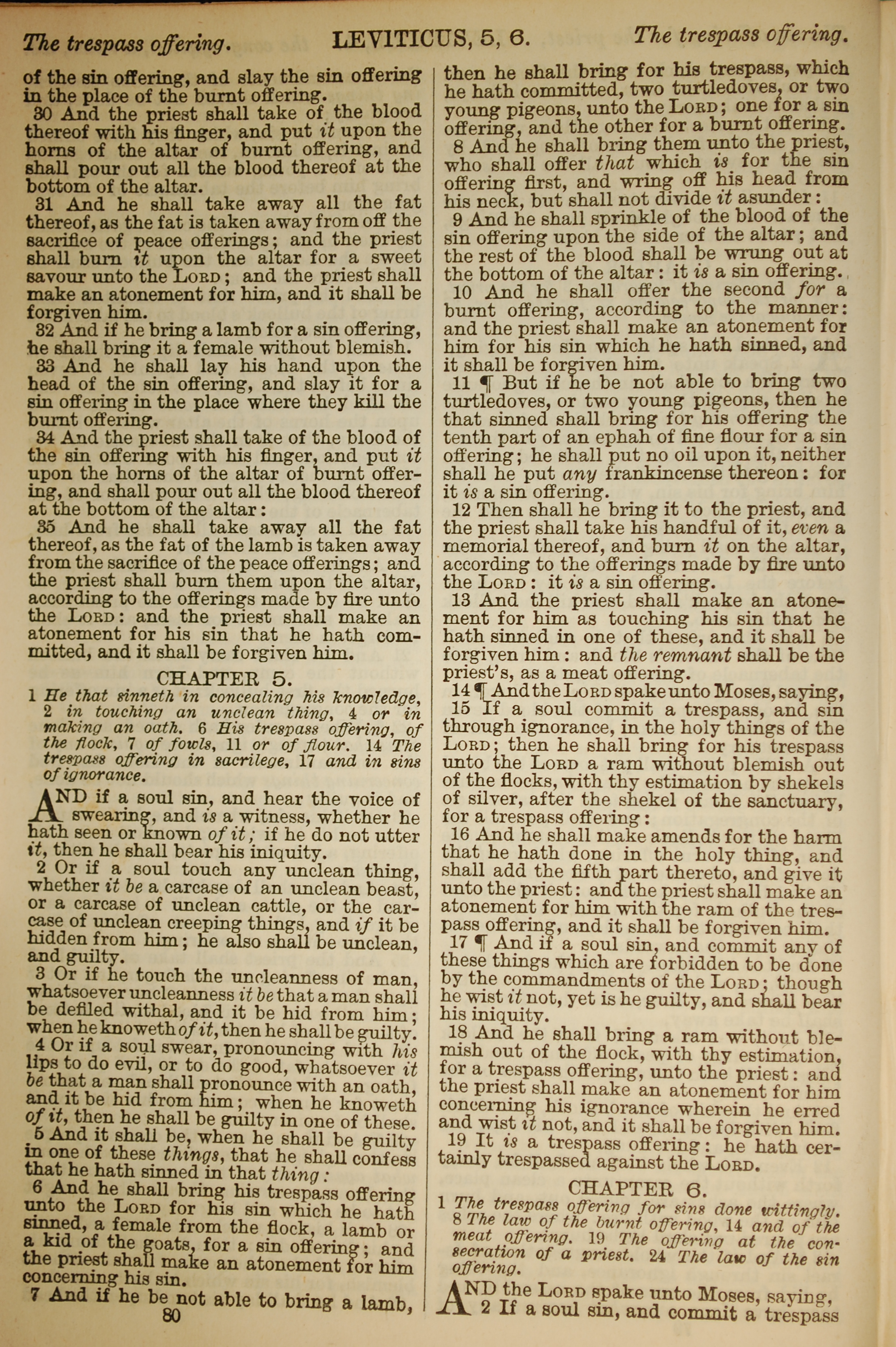 1886年英文聖經 利未記 4 章 30 節到 6 章 2 節