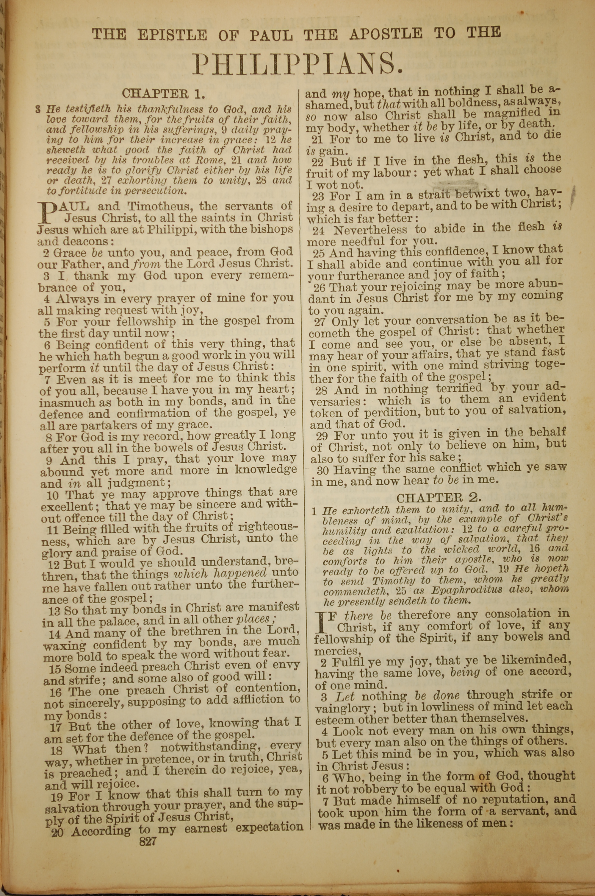 1886年英文聖經 腓立比書 1 章 1 節到 2 章 7 節