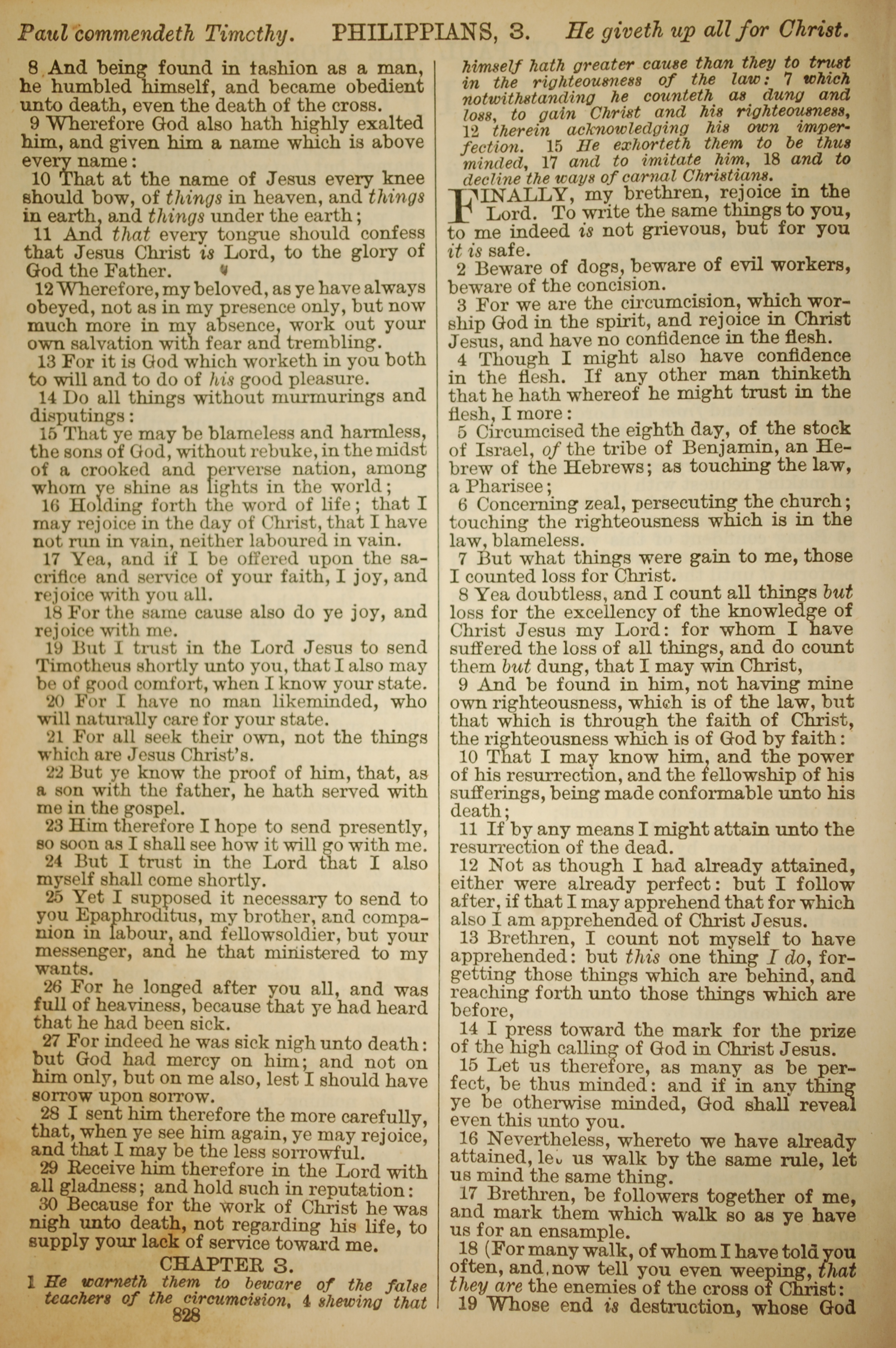 1886年英文聖經 腓立比書 2 章 8 節到 3 章 19 節