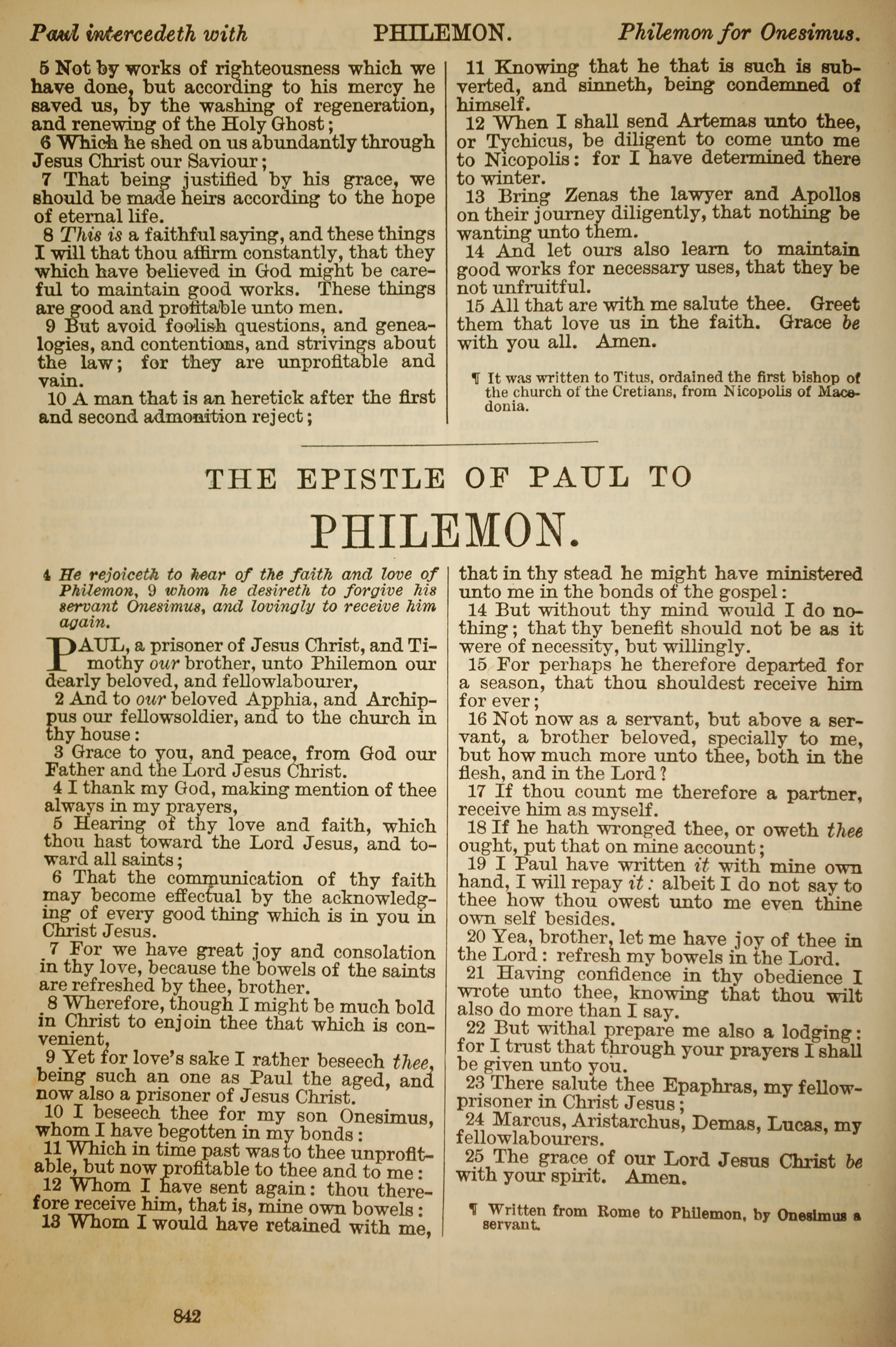 1886年英文聖經 腓利門書 1 章 1 節到 1 章 25 節